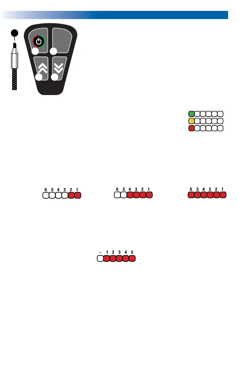 display will illuminate for approximately two seconds. Two Red LEDS will progressively illuminate for every