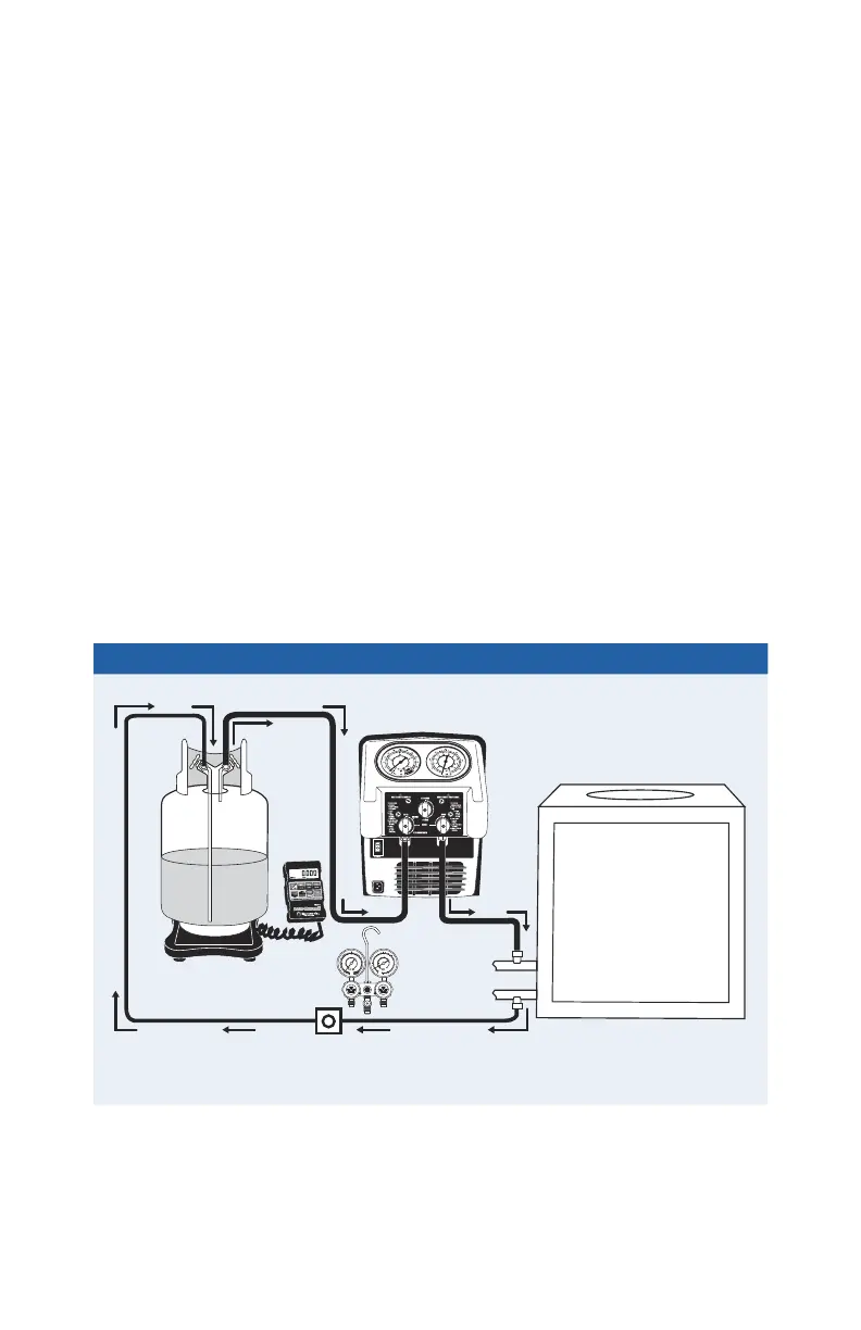 manifold gauge set with sight glass to verify liquid flow. Recovery tank must have a minimum pressure