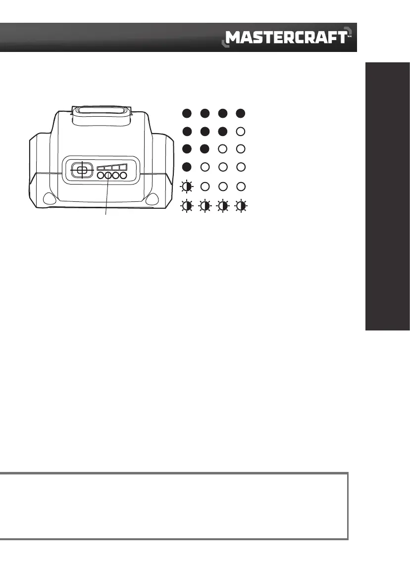 the battery pack. Press the Fuel Gauge button to display the LED lights. The LED lights will stay lit for