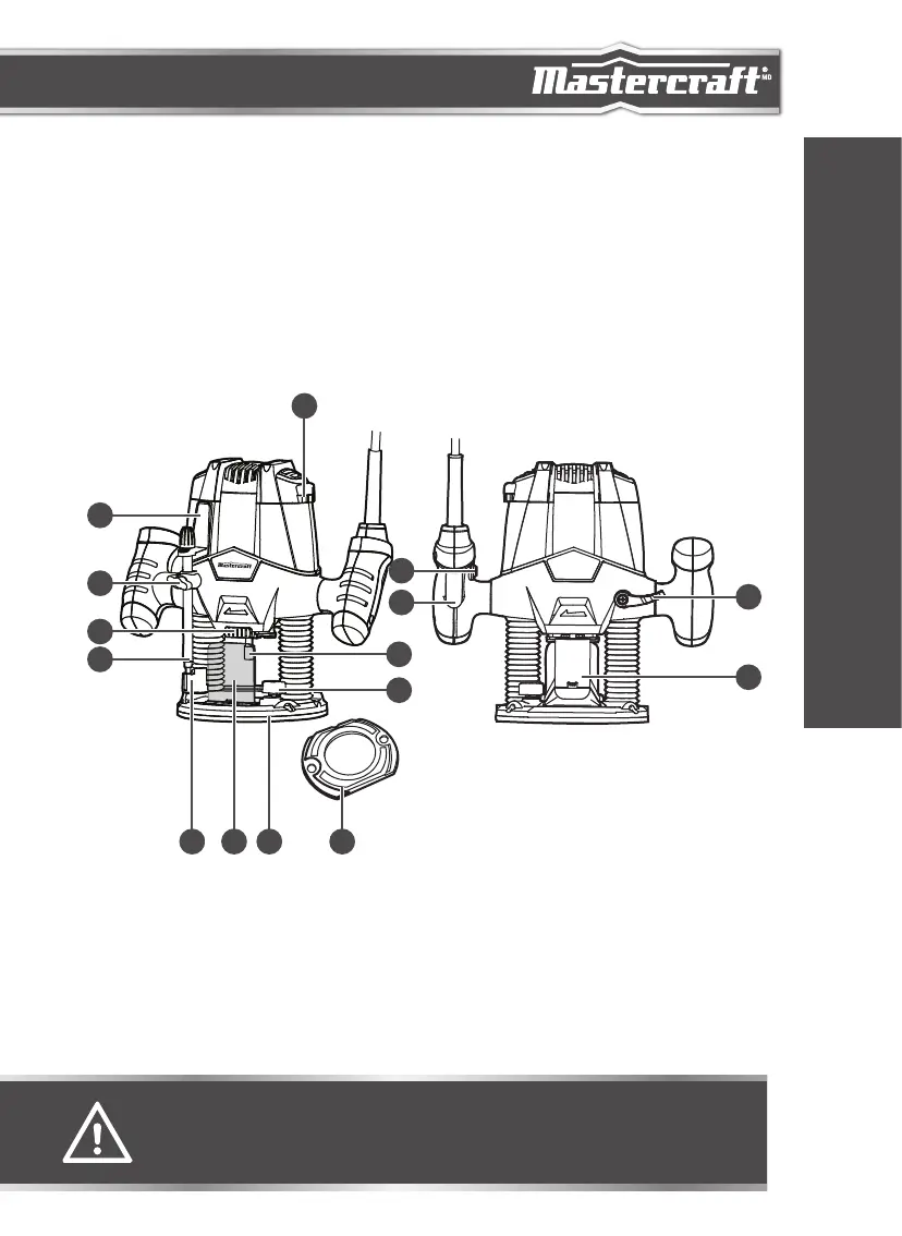 bushing adaptor (with two nuts), 5-piece router bit set, instruction manual.