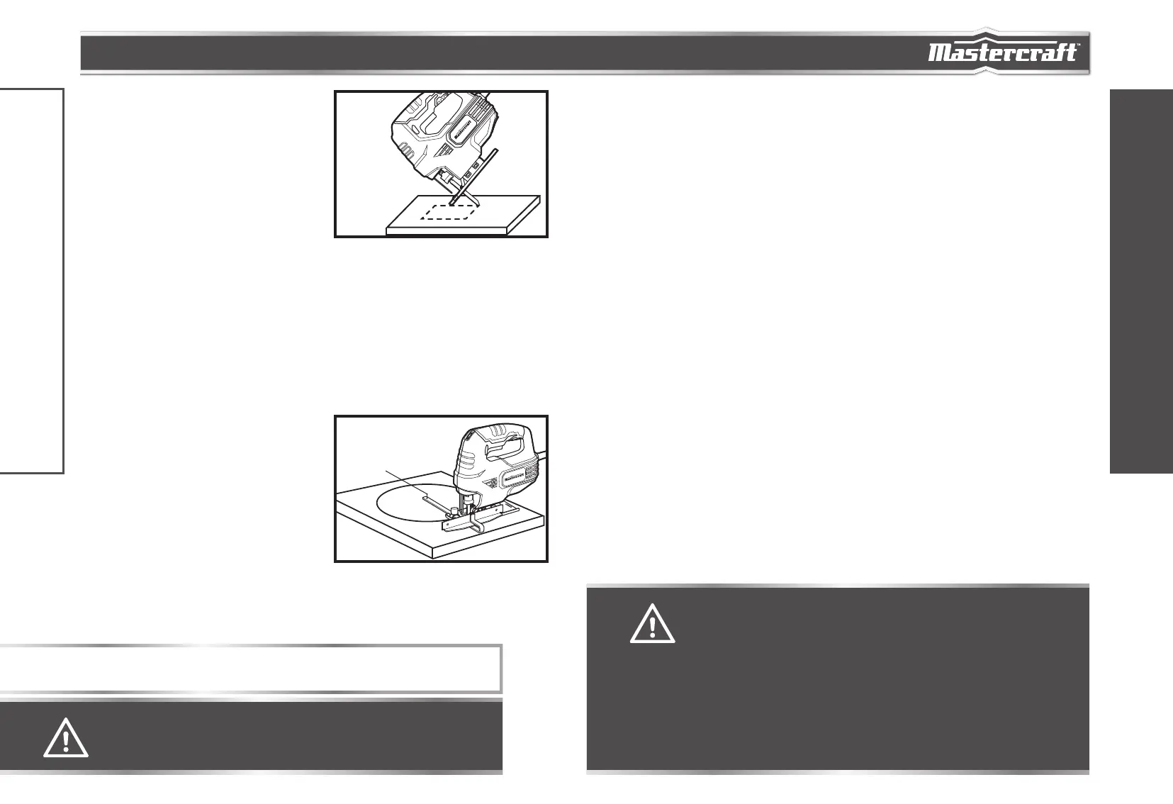workpiece to prevent side wobble, start the saw and then gradually lower the blade into the workpiece.