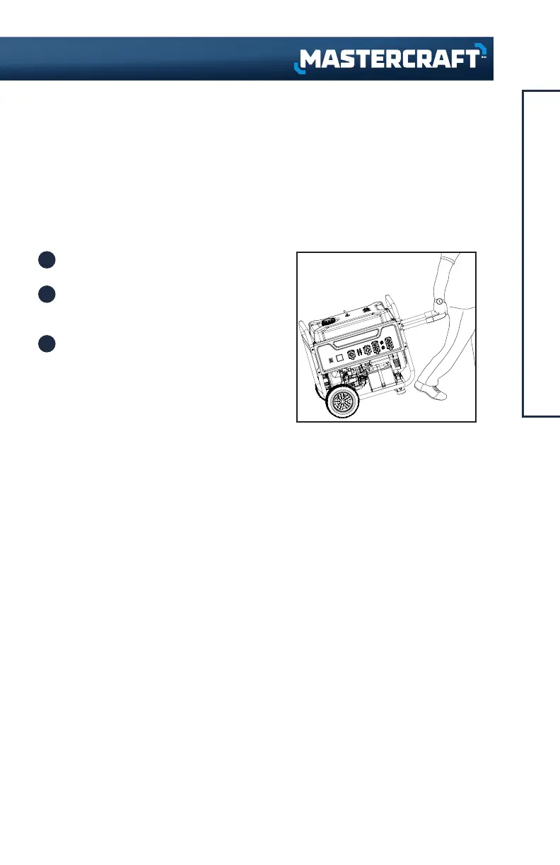 – ALWAYS place the generator on its wheels in the upright position.