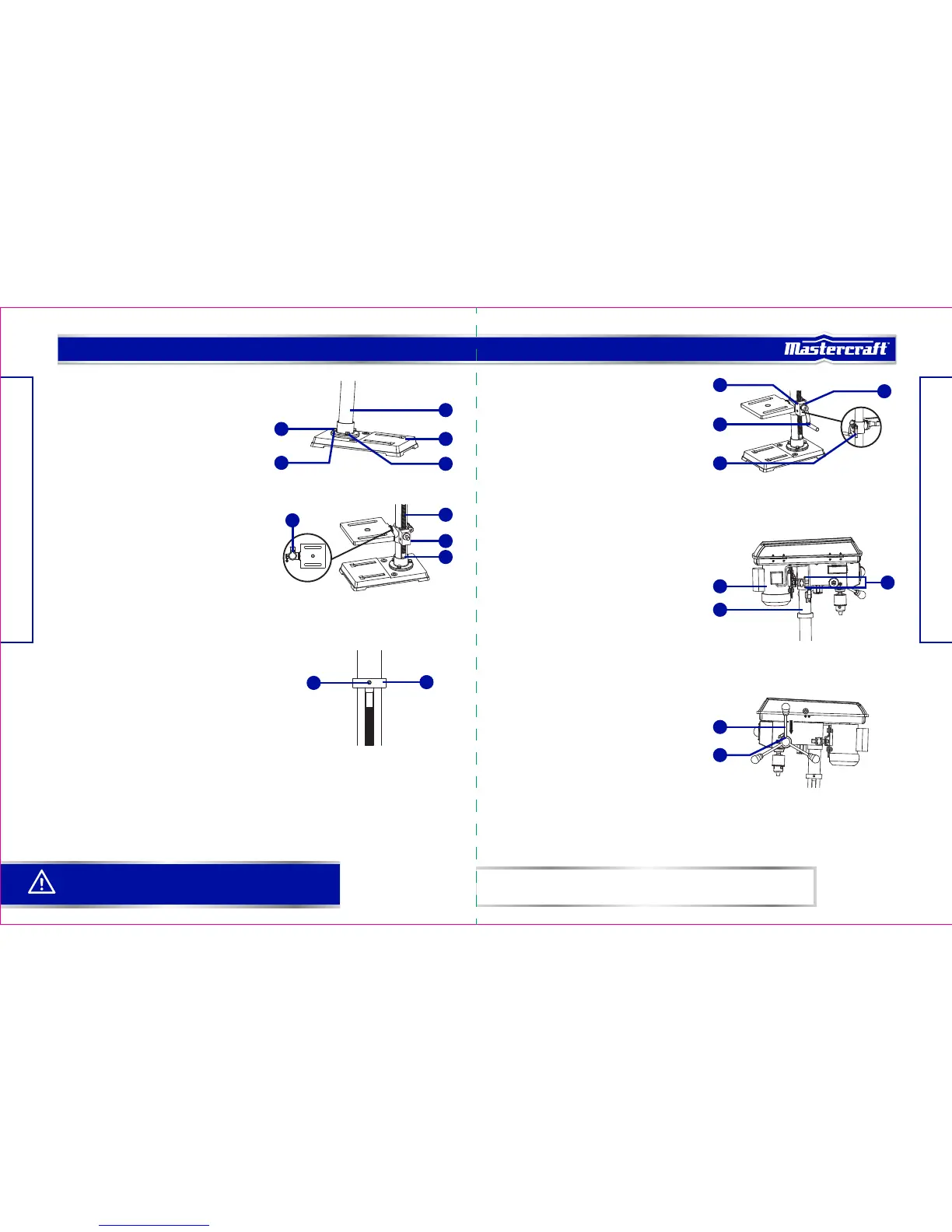 • Lift the drill press head assembly (1) carefully and place