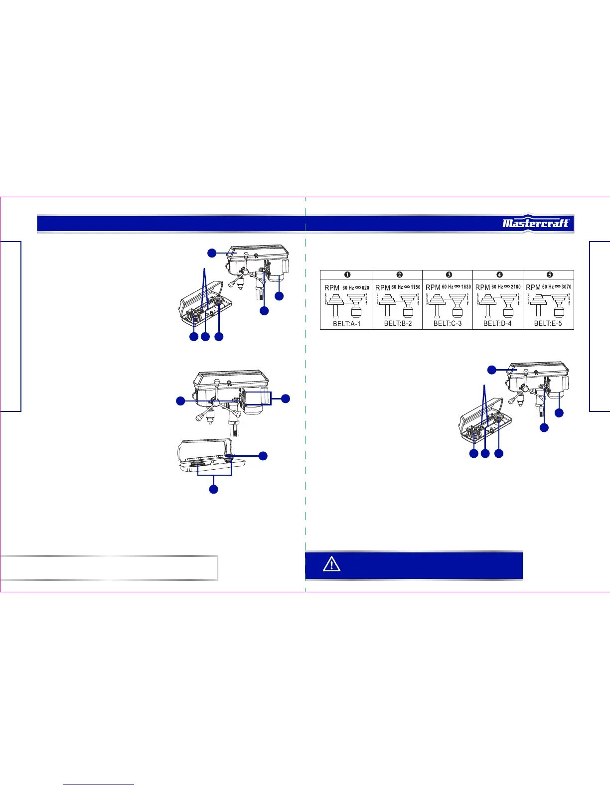• Place a belt (4) on the motor pulley (5) and the spindle