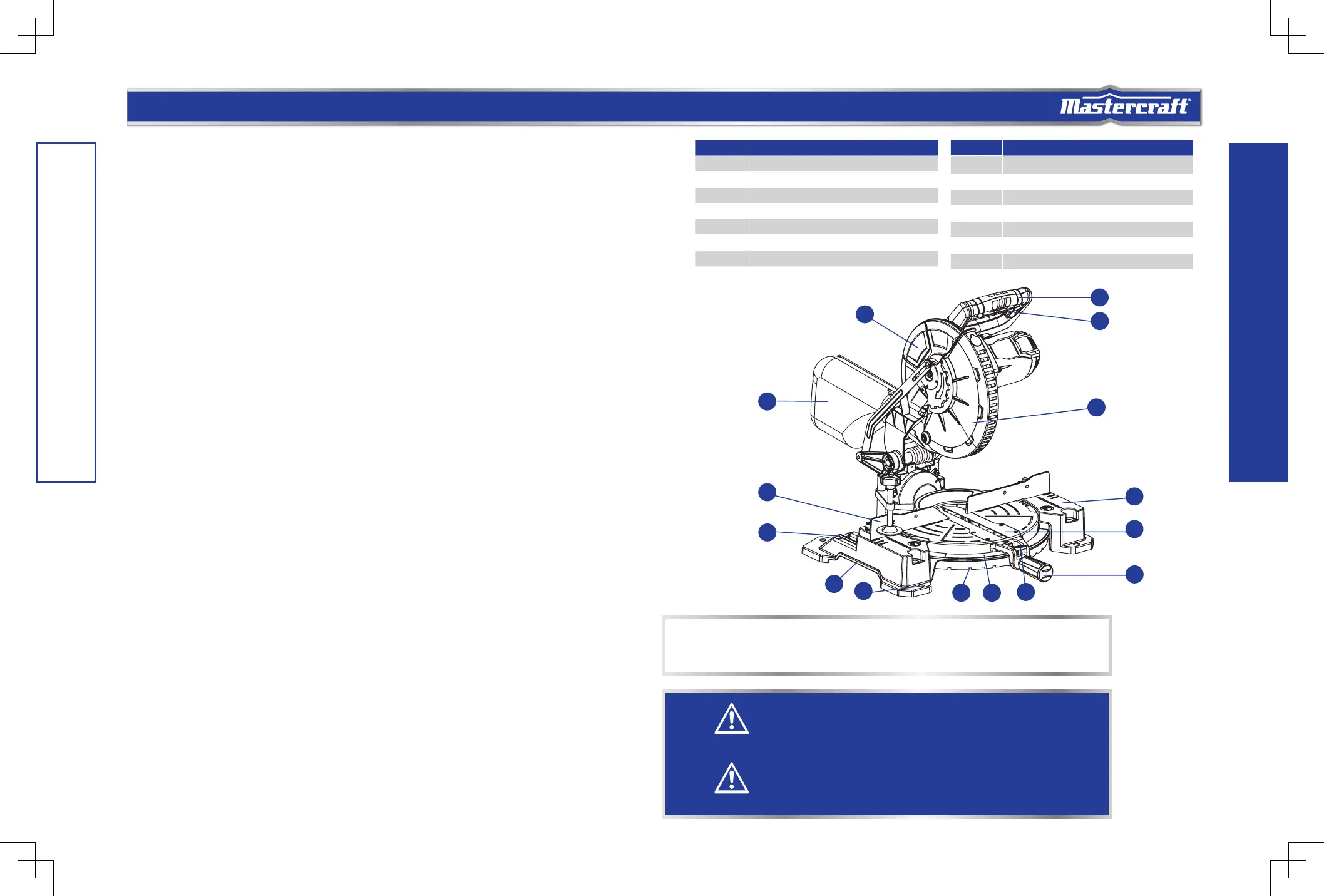 • Throat plate: A plate inserted in the mitre saw table that allows for blade clearance.