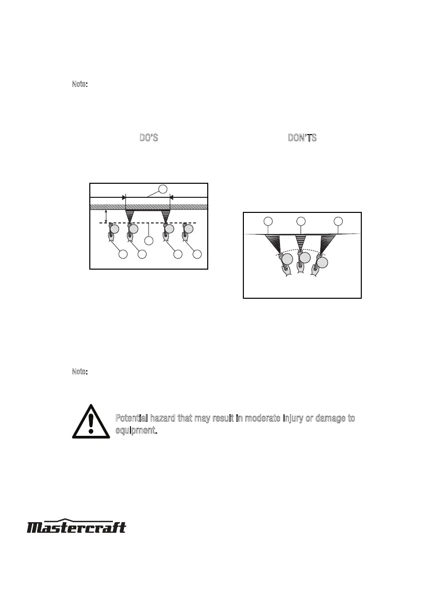 • Do not fan the gun while painting. This will cause a build-up of paint in the