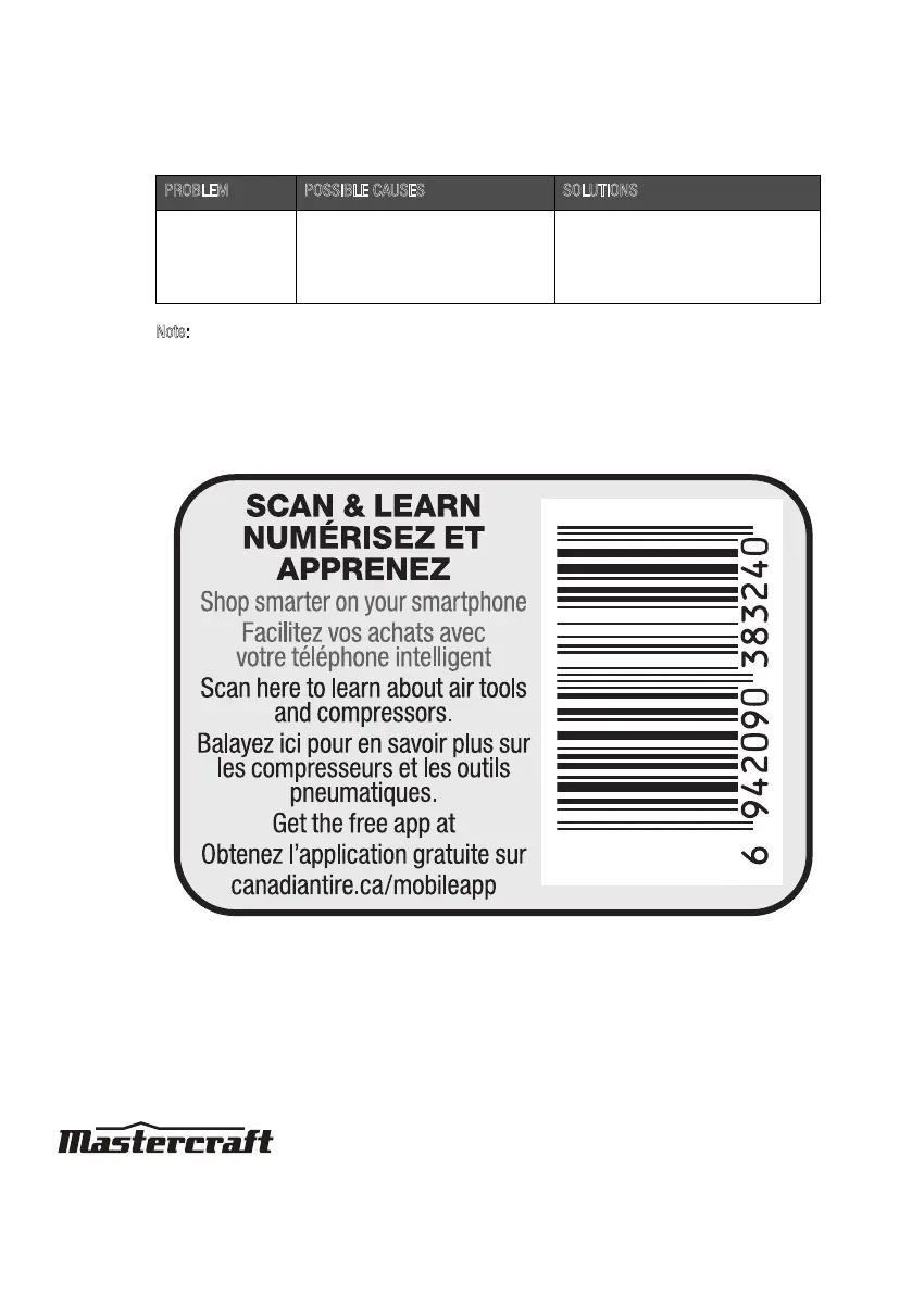PROBLEM POSSIBLE CAUSES SOLUTIONS