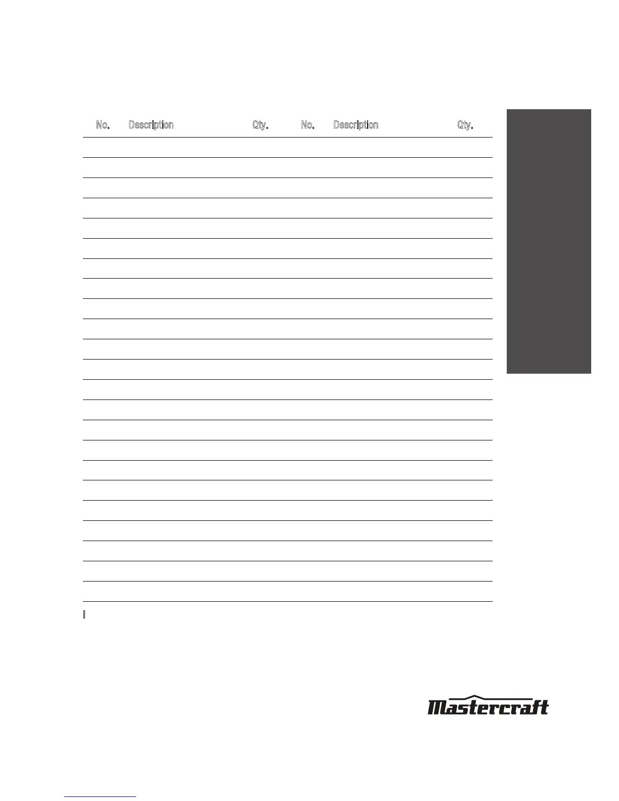 No. Description Qty. No. Description Qty.