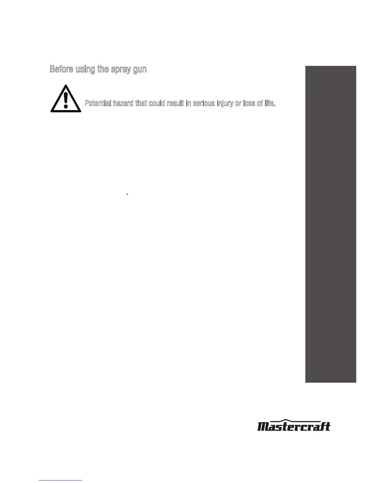 • Do not exceed the maximum pressure of spray gun or any other parts in the