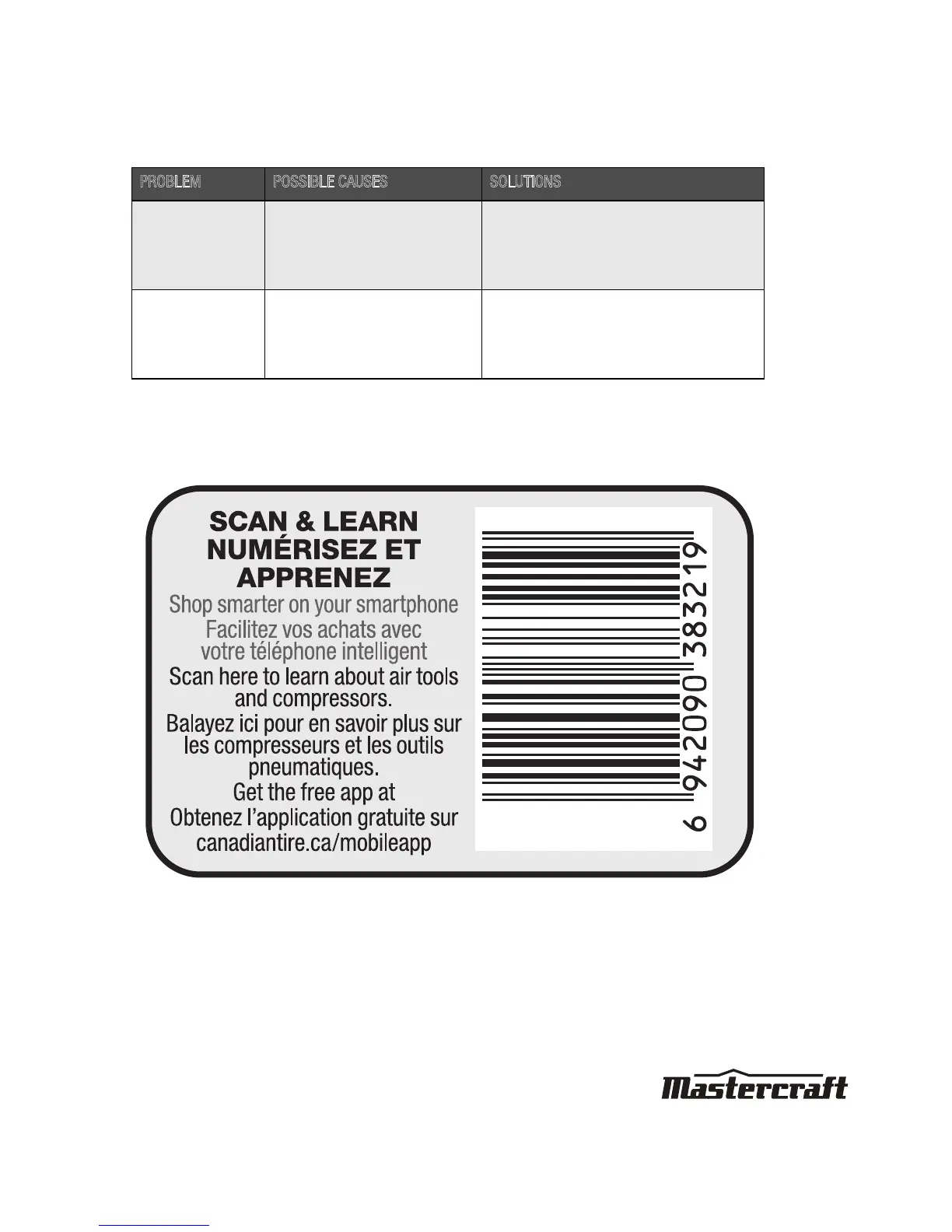 PROBLEM POSSIBLE CAUSES SOLUTIONS