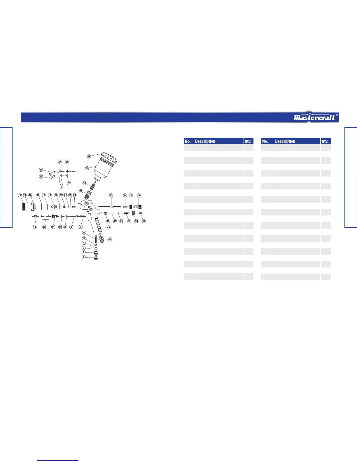 Parts list - Production Spray GunExploded view - Production Spray Gun