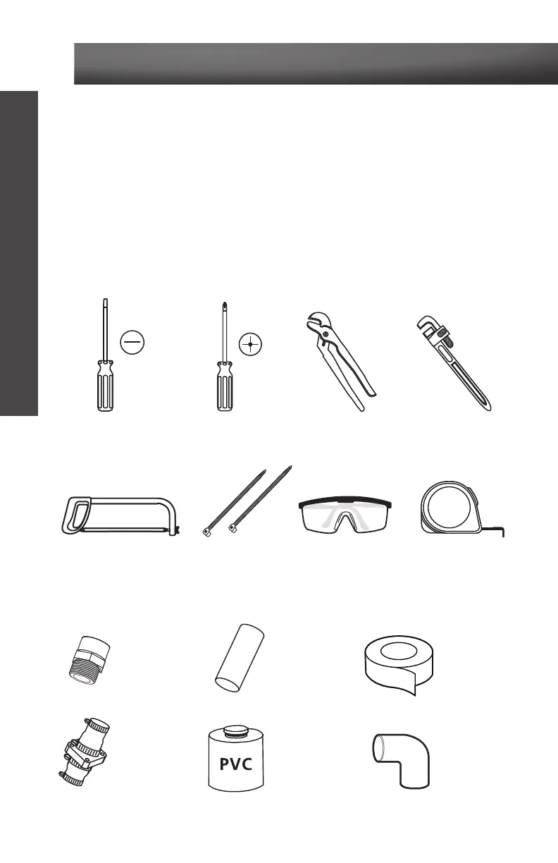 Cross-head screwdriver Channel lock pliers Pipe wrench