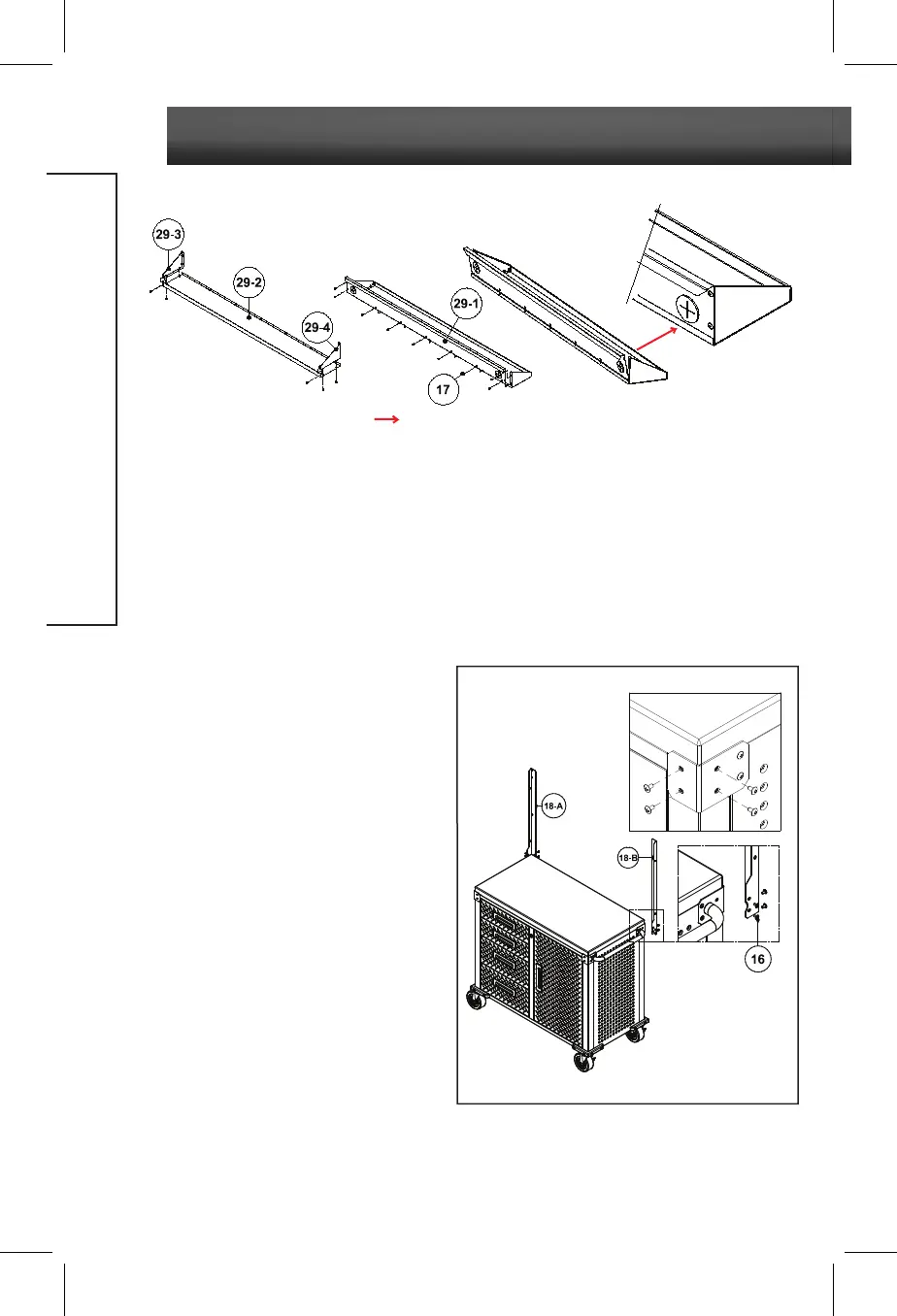 Right Panel (Part 29-4) to Top Cantilever Shelf Base Panel (Part 29-2). Use six Screws