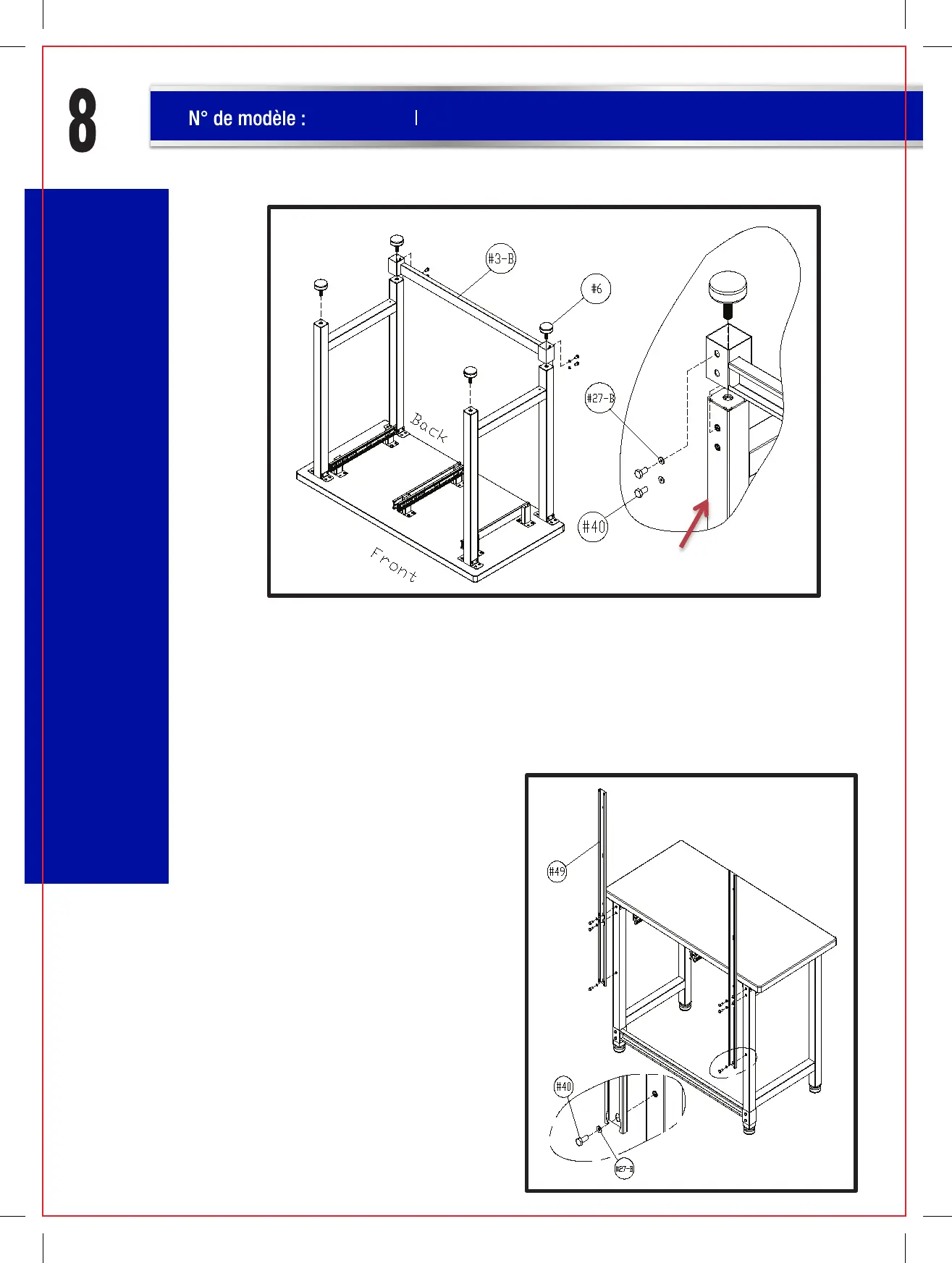 Fixez la barre transversale inférieure (3-B) à l'arrière des pieds (5-B), alignez les trous de vis et utilisez des vis (40) avec