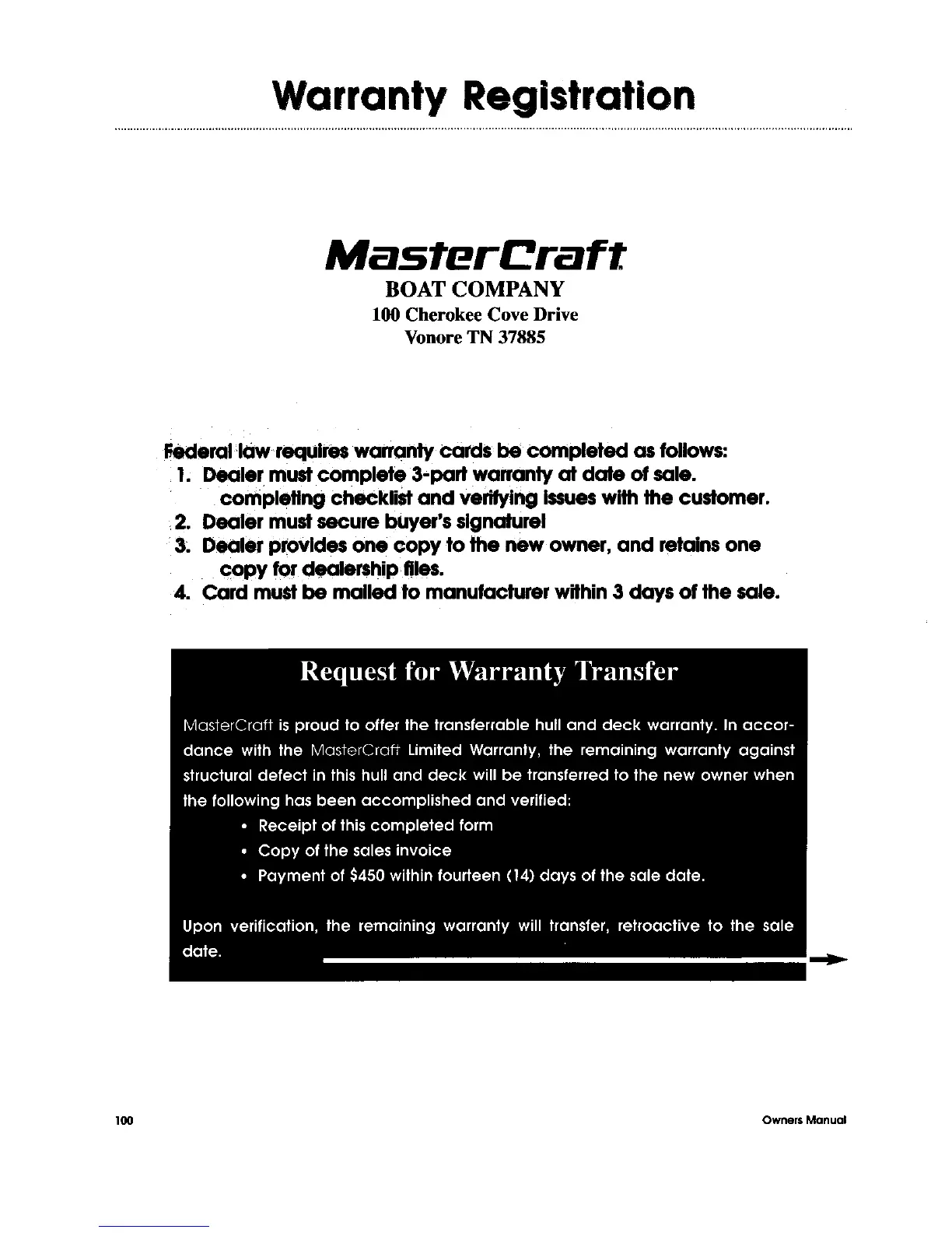 MasterCraft 1999 MariStar 210 - Warranty Registration and Transfer; Warranty Registration Process; Warranty Transfer Procedure