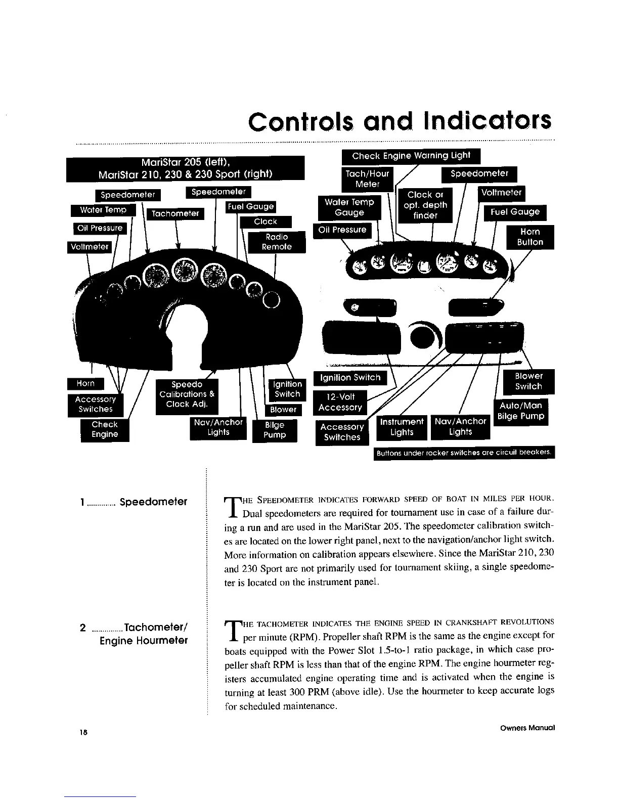 MasterCraft 1999 MariStar 210 - Controls and Indicators Overview; Speedometer, Tachometer, and Hourmeter