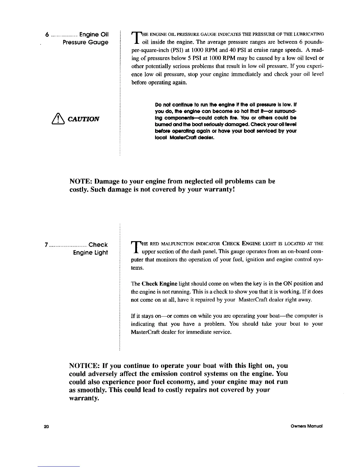 MasterCraft 1999 MariStar 210 - Oil Pressure Gauge and Check Engine Light