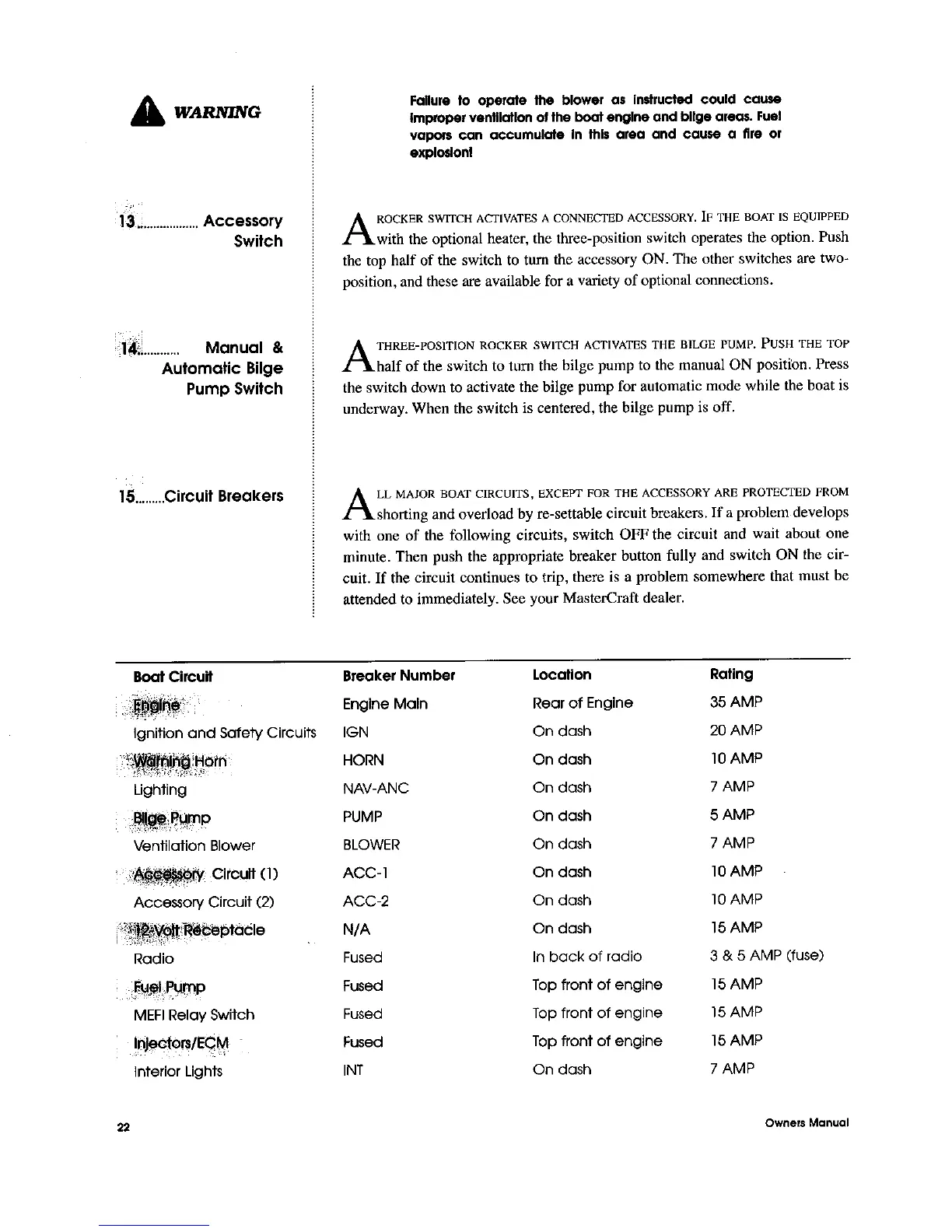 MasterCraft 1999 MariStar 210 - Accessory and Bilge Pump Switches; Circuit Breakers and Protection