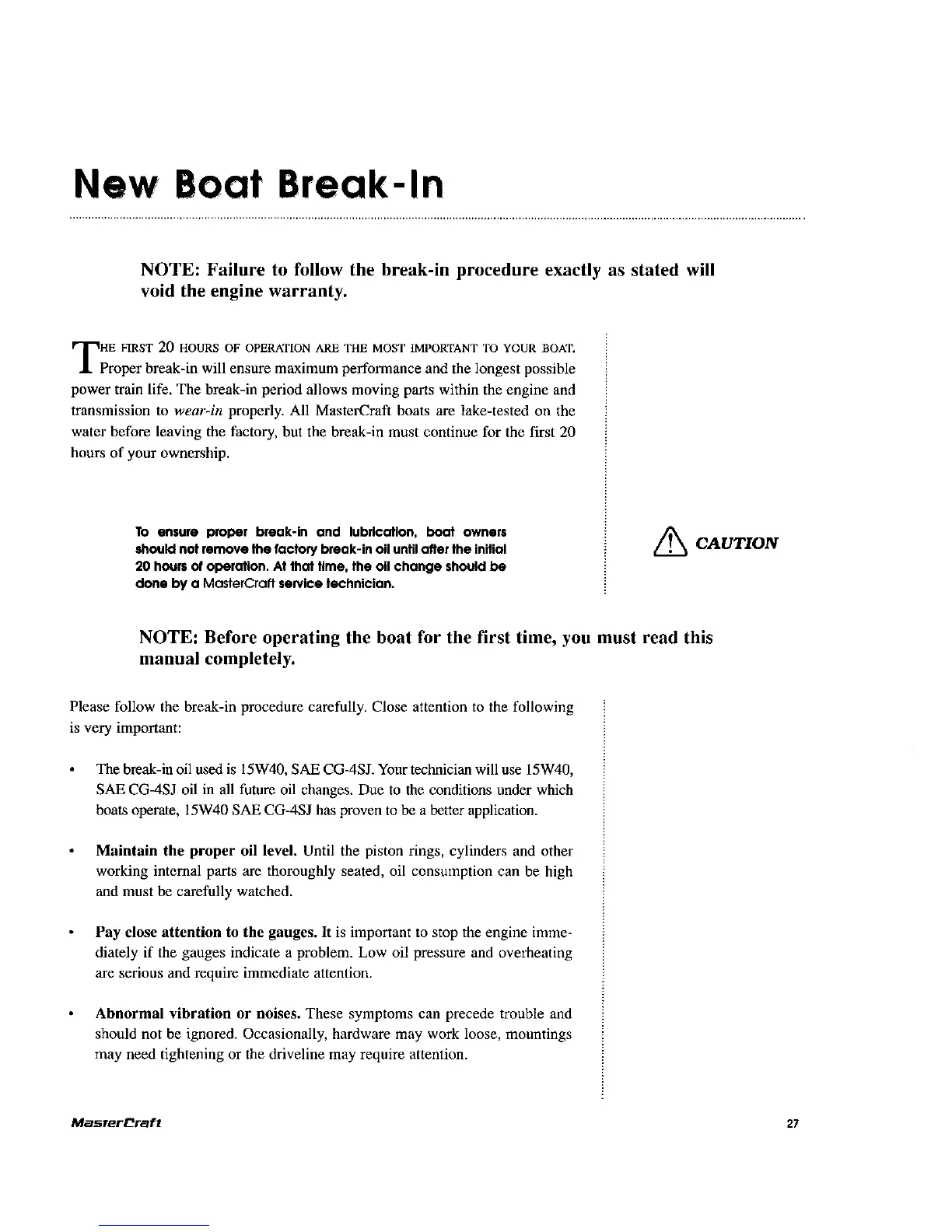 MasterCraft 1999 MariStar 210 - New Boat Break-In Procedures; Break-In Operation Schedule; Post Break-In Operation