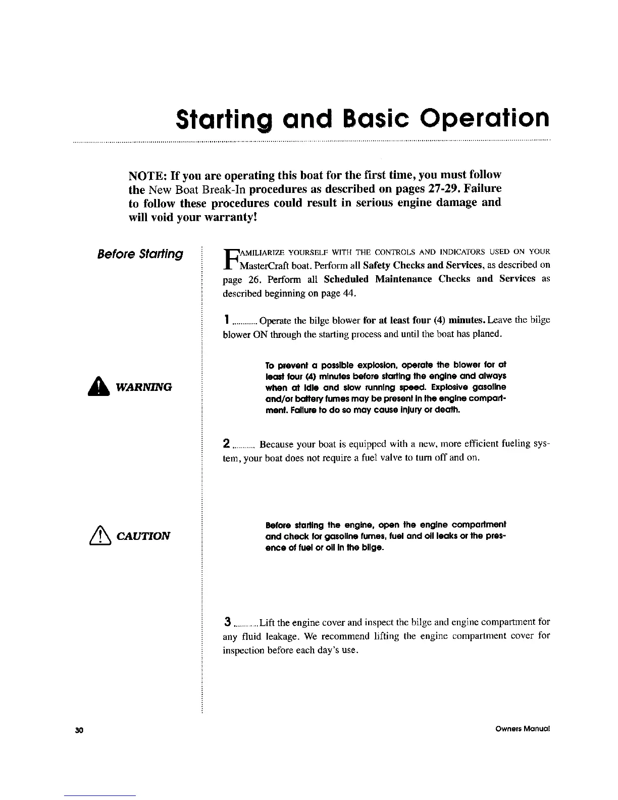 MasterCraft 1999 MariStar 210 - Starting and Basic Operation; Pre-Start Checks and Familiarization