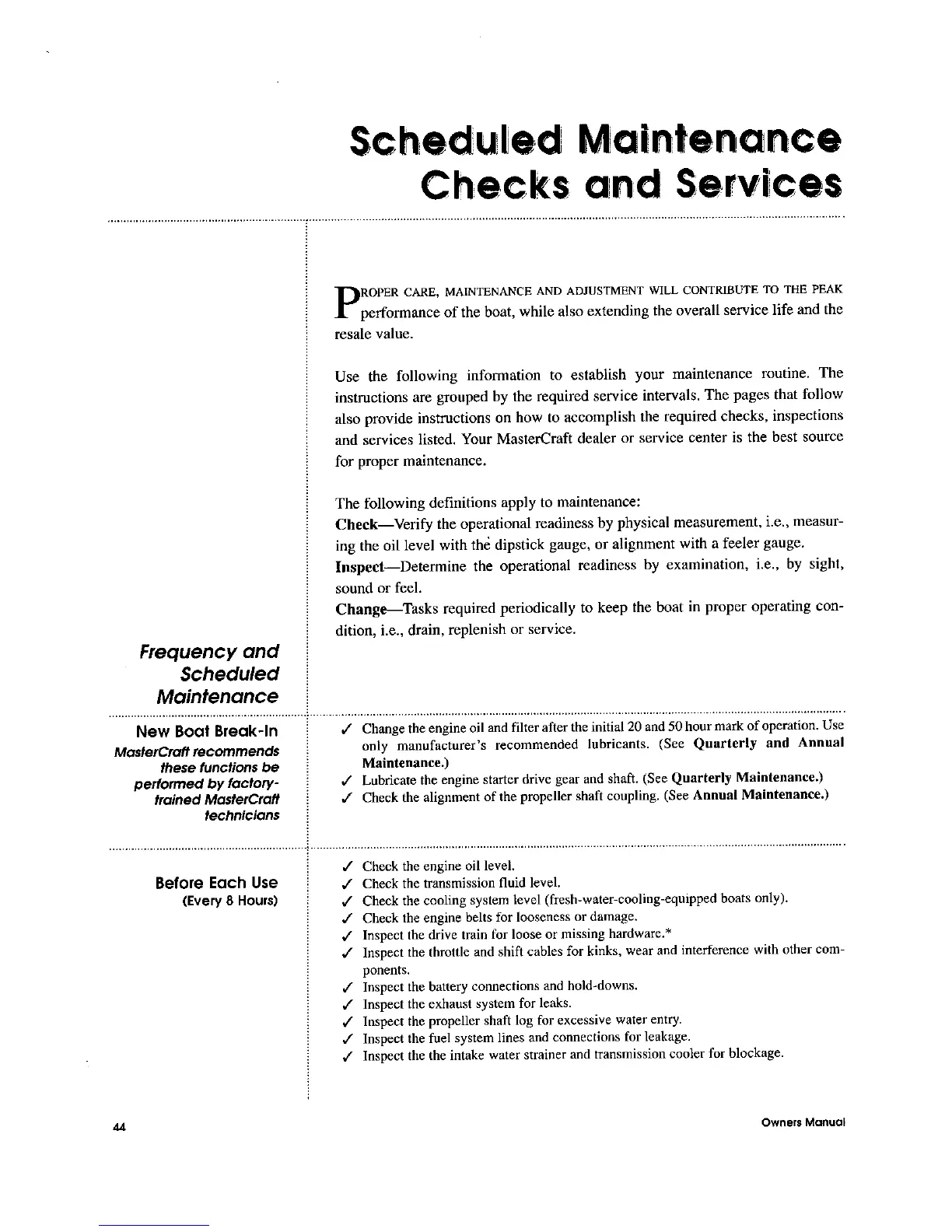 MasterCraft 1999 MariStar 210 - Scheduled Maintenance; Maintenance Intervals and Task Lists
