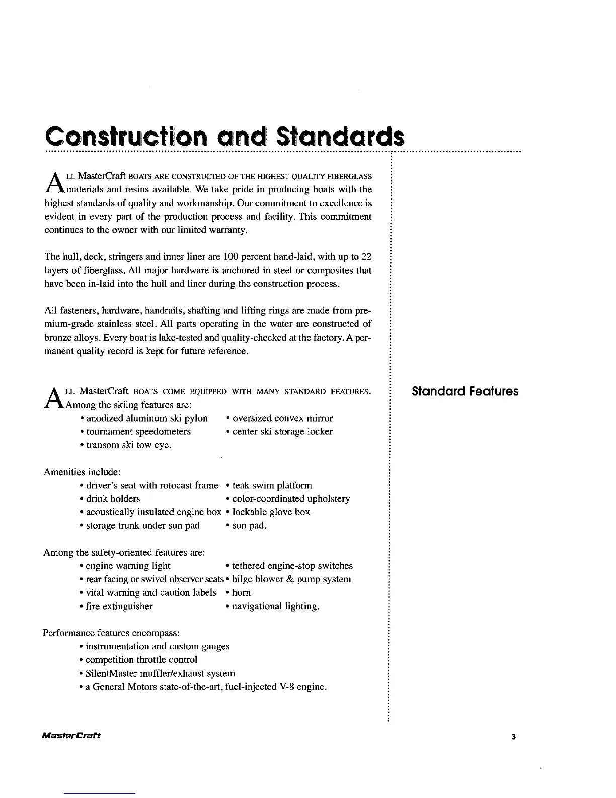 MasterCraft 1999 MariStar 210 - Construction and Standards; Standard Features and Amenities