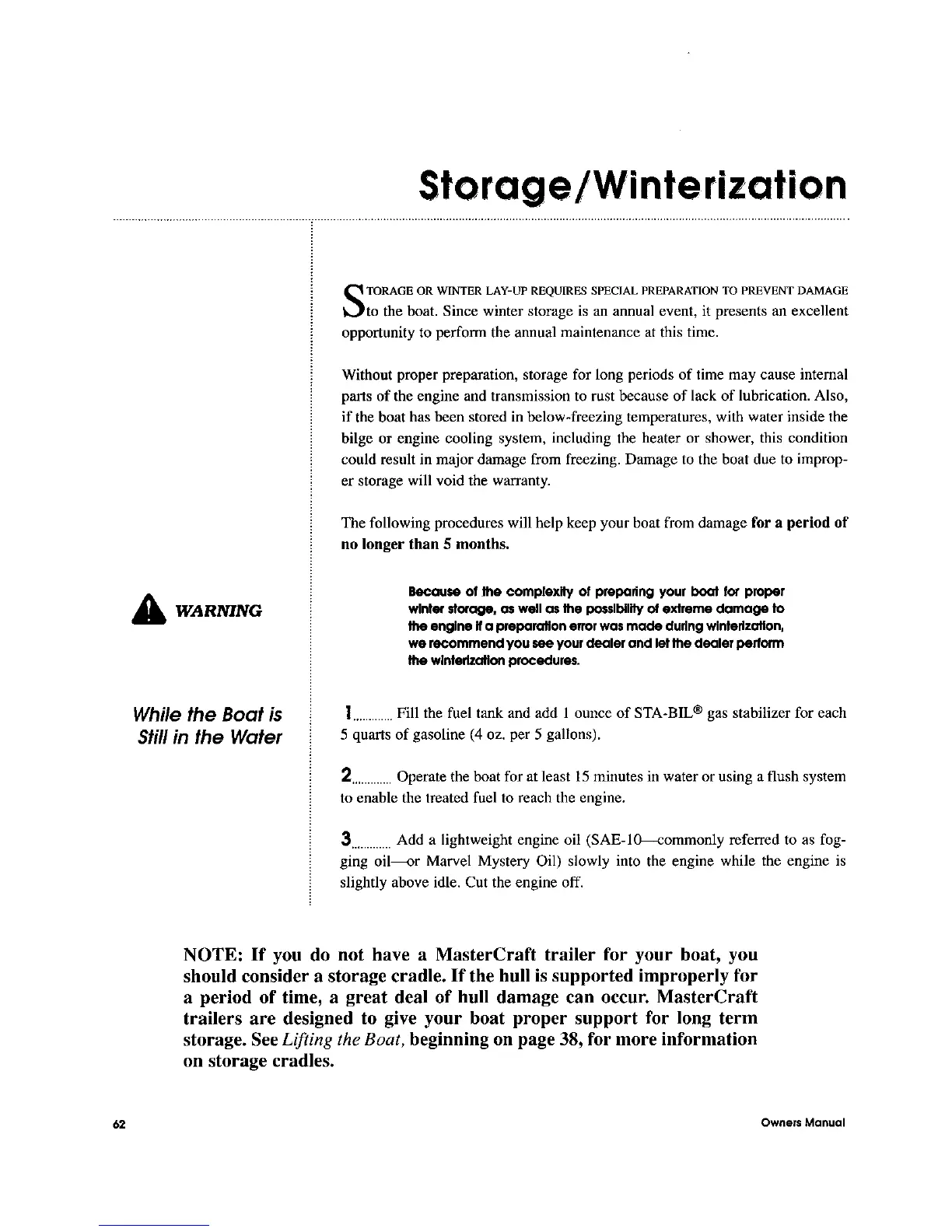 MasterCraft 1999 MariStar 210 - Storage and Winterization; Preparing Boat for Storage (In Water)