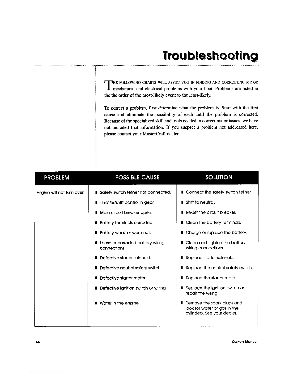 MasterCraft 1999 MariStar 210 - Troubleshooting Common Issues; Engine Starting Problems