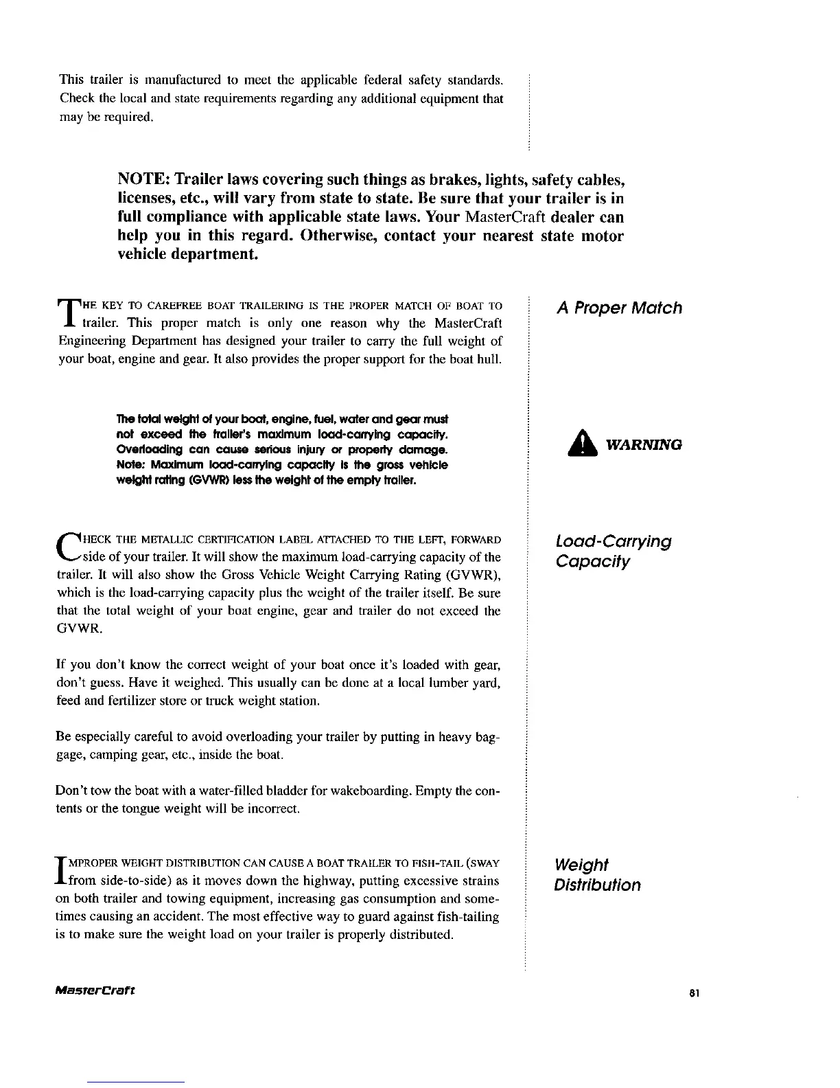 MasterCraft 1999 MariStar 210 - Trailer Matching, Load Capacity, and Weight Distribution