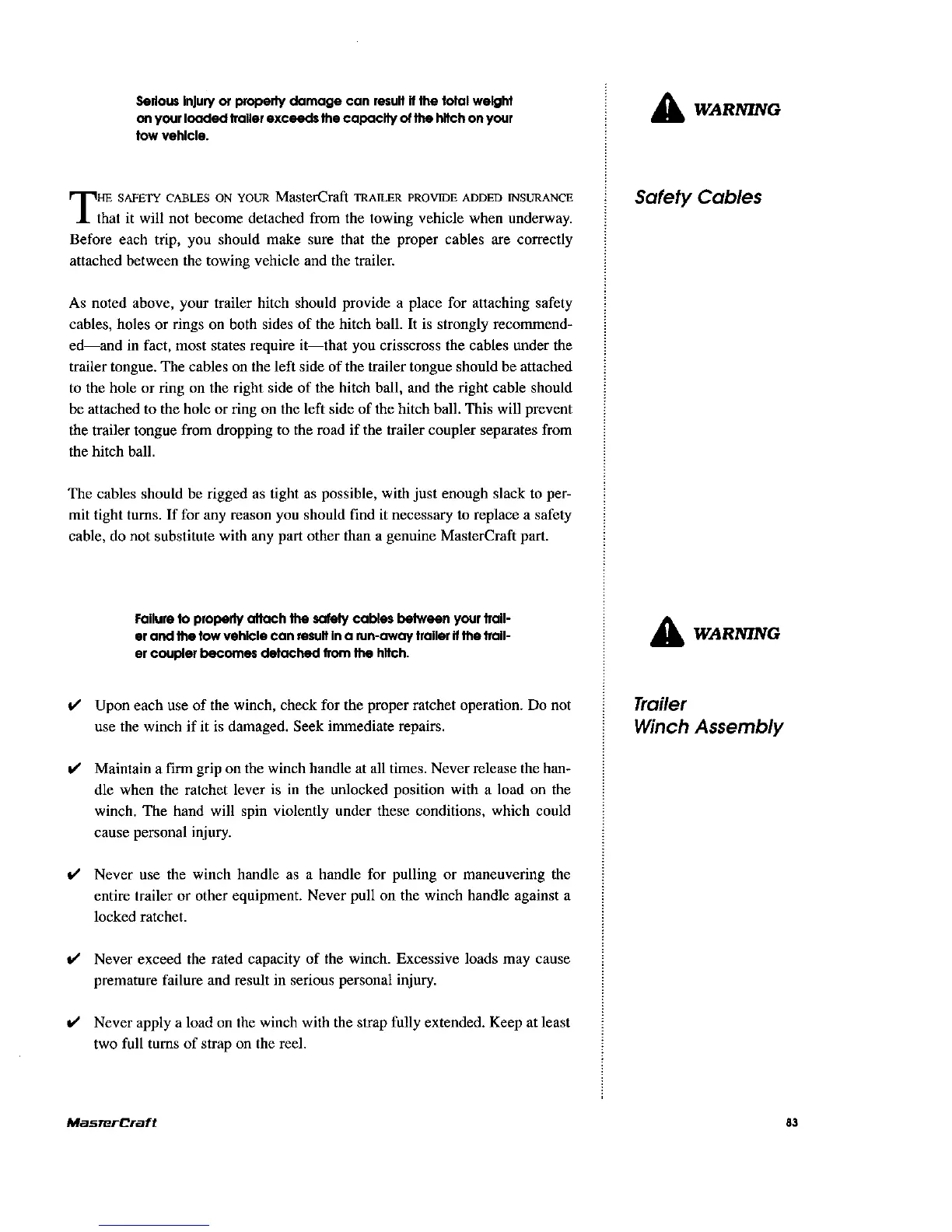 MasterCraft 1999 MariStar 210 - Safety Cables and Winch Assembly Operation
