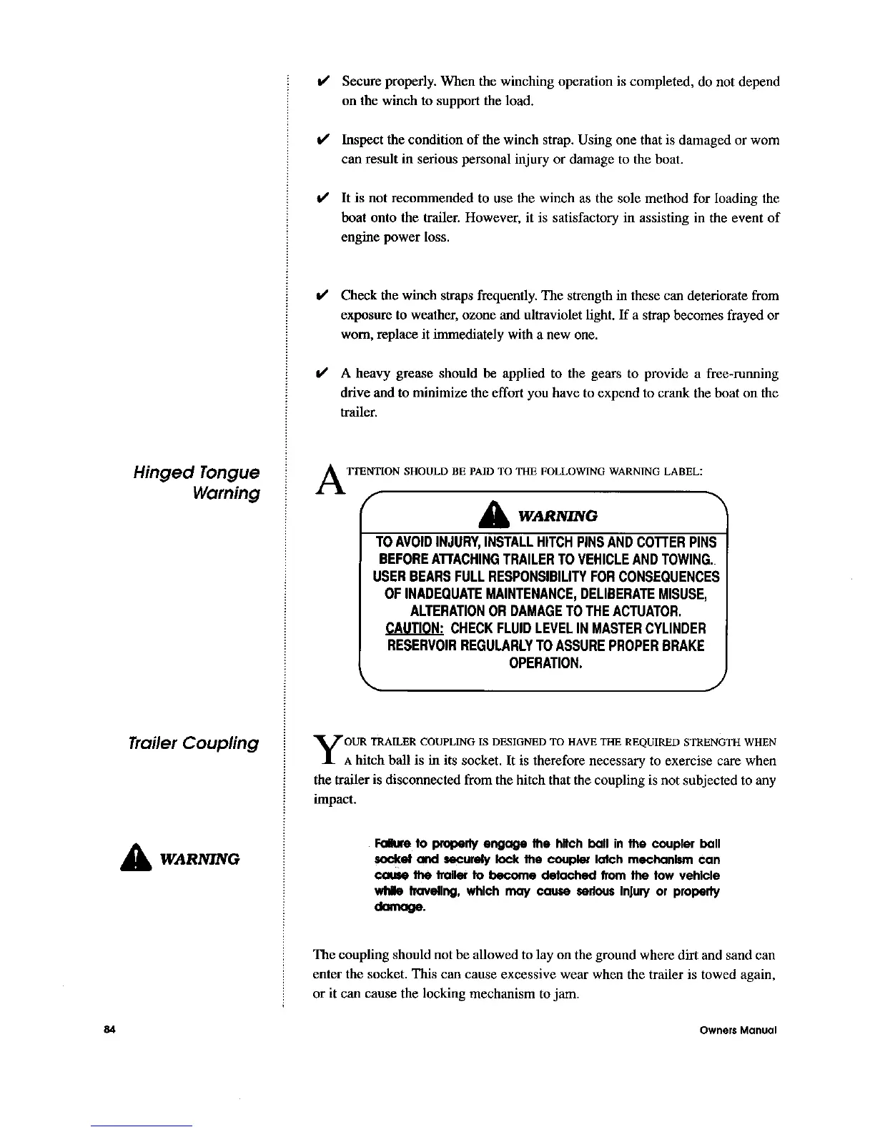 MasterCraft 1999 MariStar 210 - Hinged Tongue Warning and Trailer Coupling
