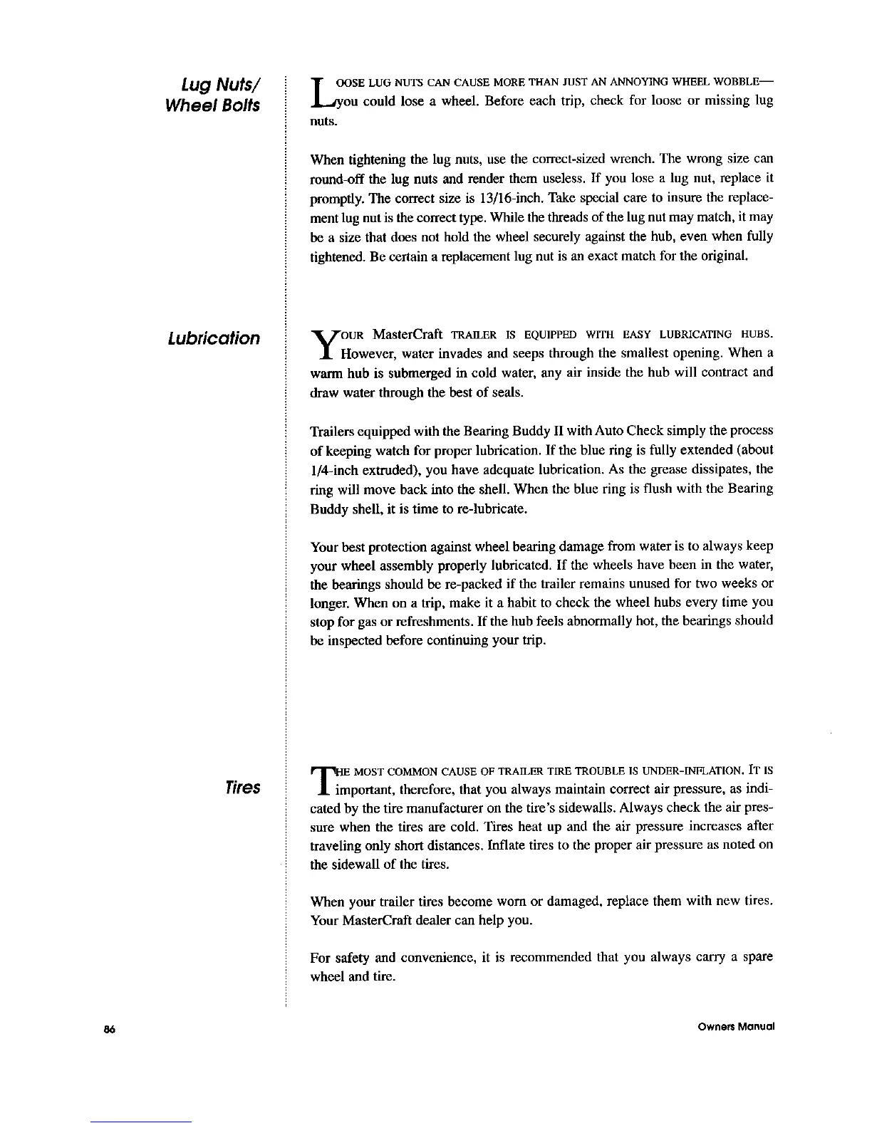MasterCraft 1999 MariStar 210 - Lug Nuts, Bearing Lubrication, and Tires