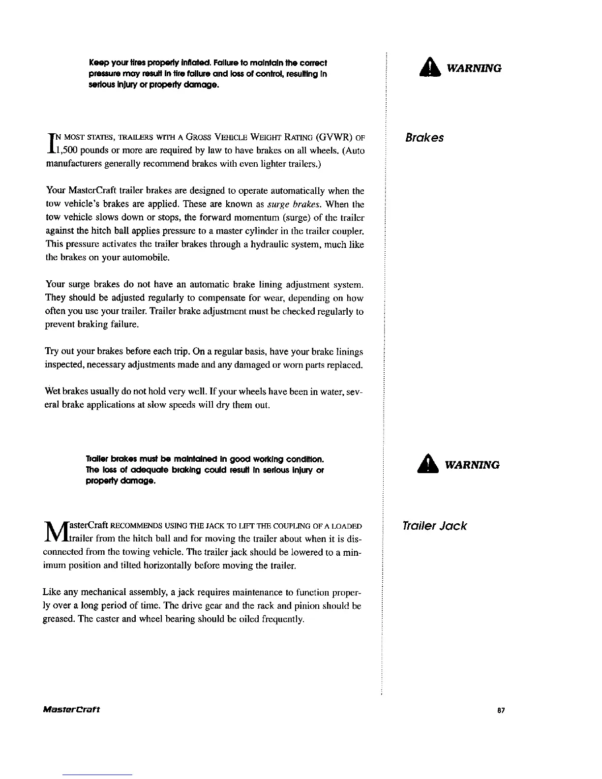 MasterCraft 1999 MariStar 210 - Trailer Brakes and Jack Operation