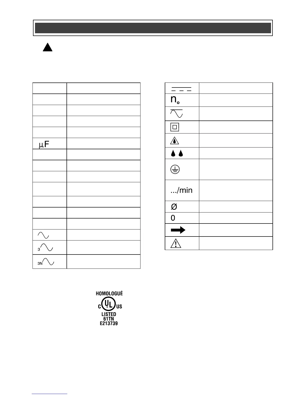 WARNING: Some of the following symbols may appear on the rotary