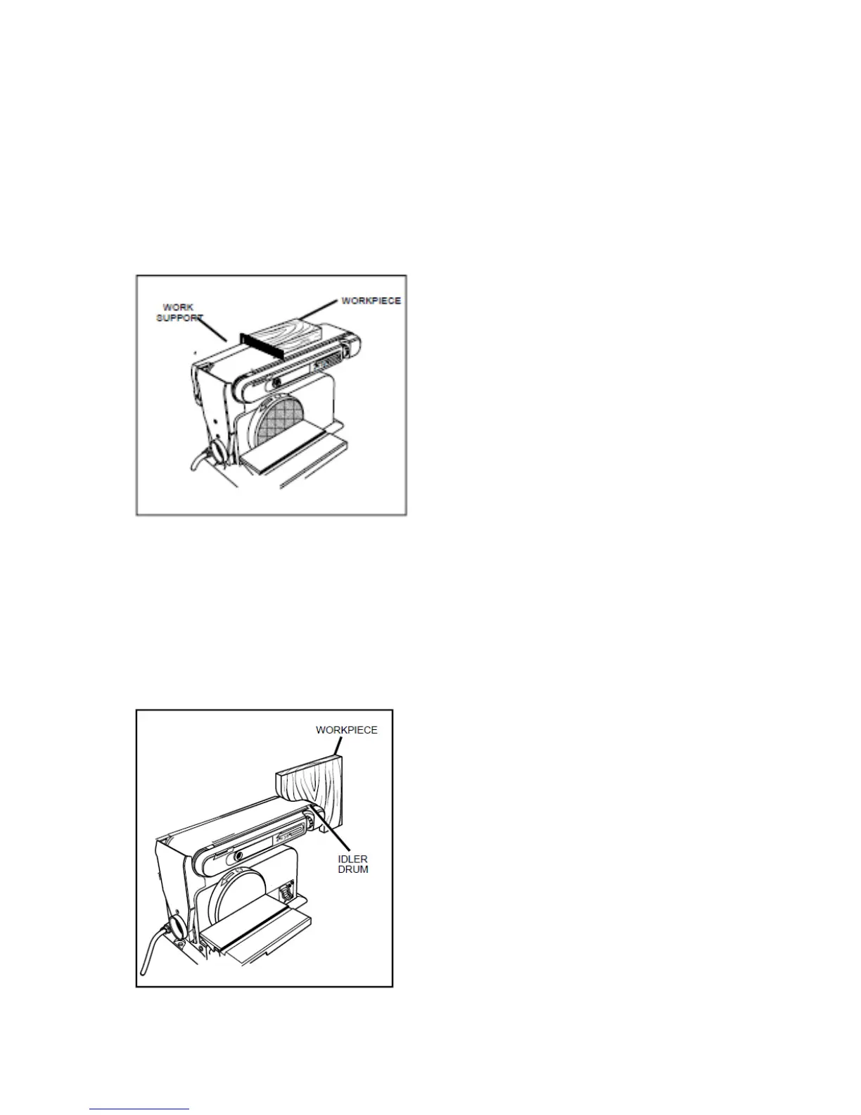 surface of the belt and against the work support (work rest), keeping ngers away from the sanding
