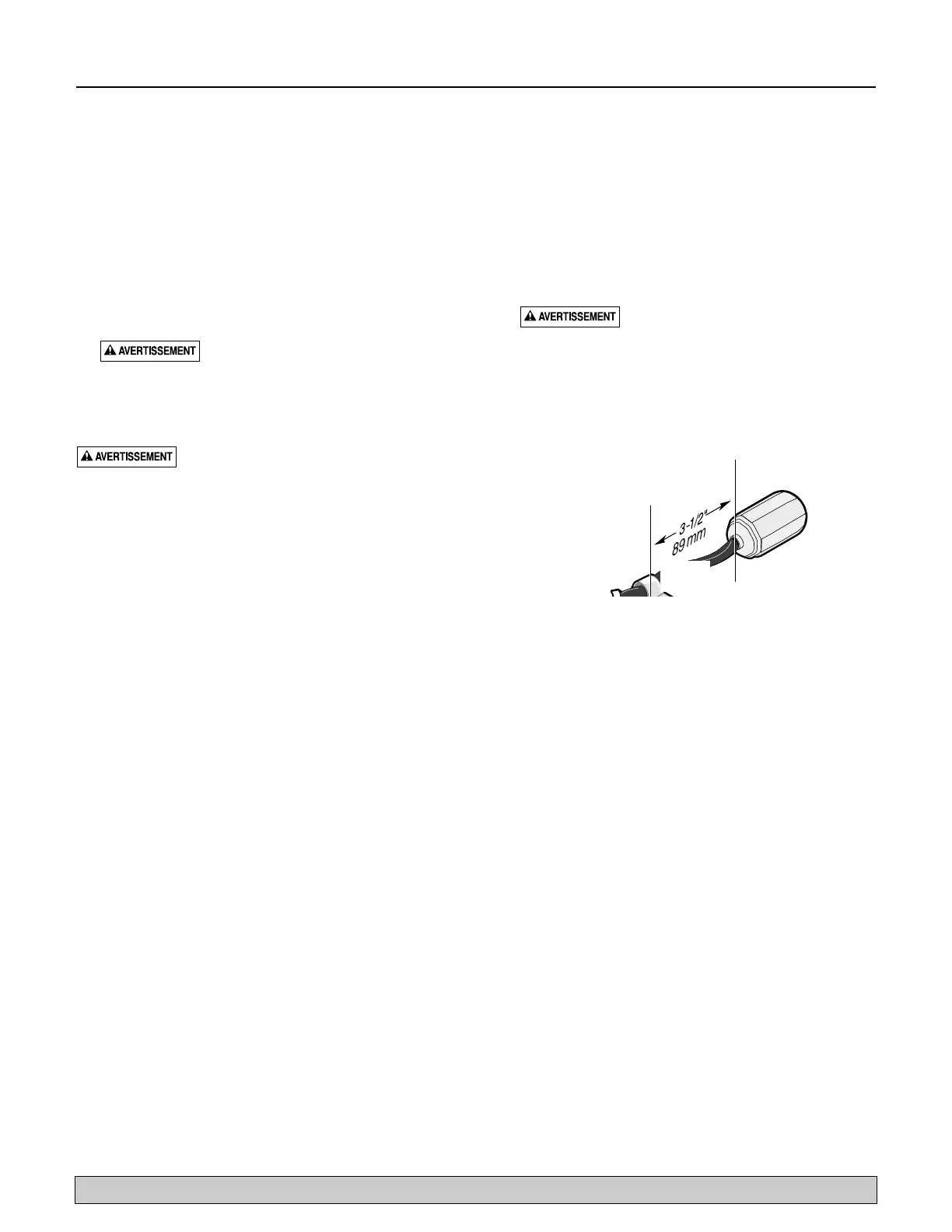 fondeur de l’eau doit être au moins 15 po (127 mm) pour