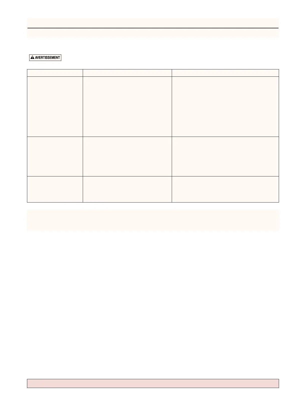 Niveau d’eau inadéquat Ajoutez de l’eau et mettez la pompe à l’essai.