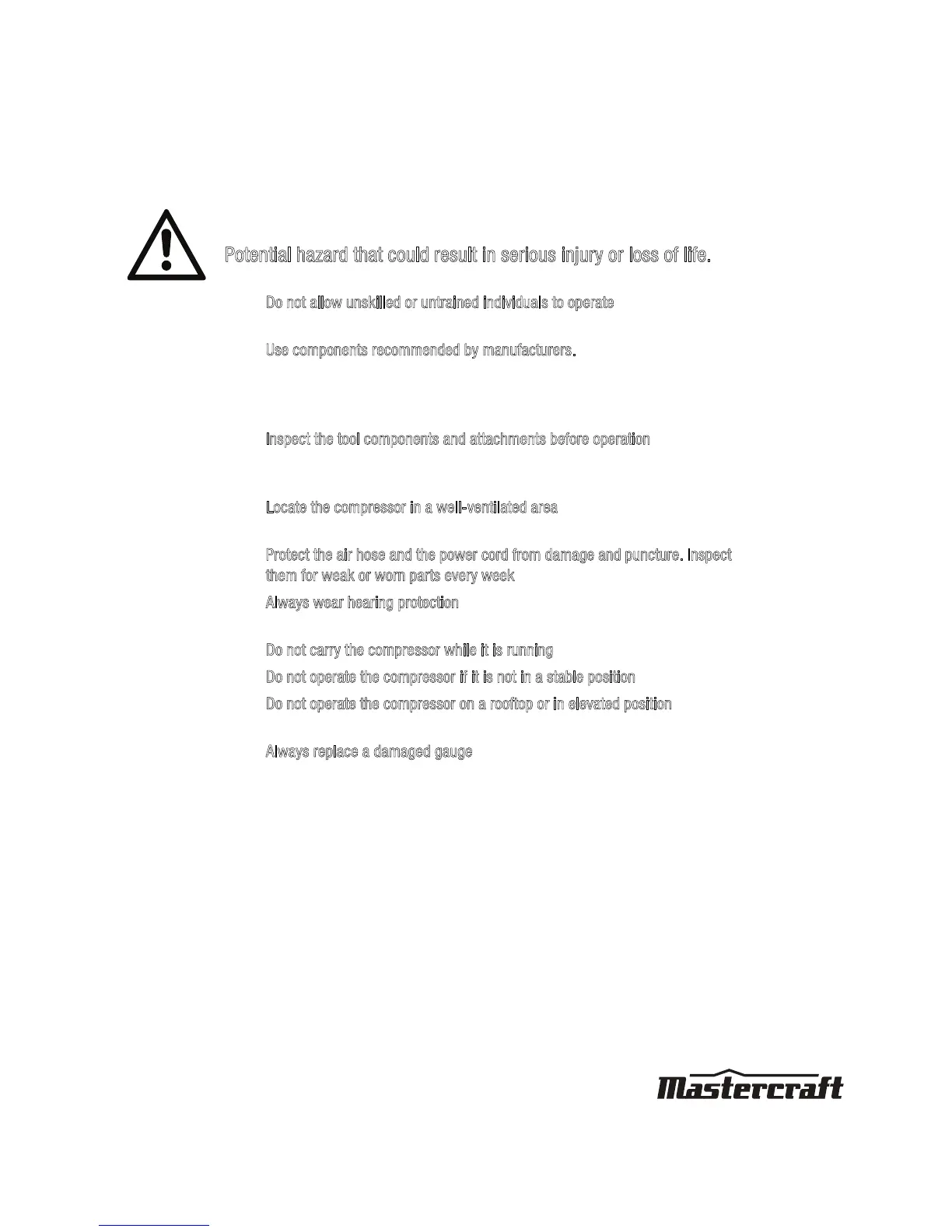 • Do not allow unskilled or untrained individuals to operate the Air-powered