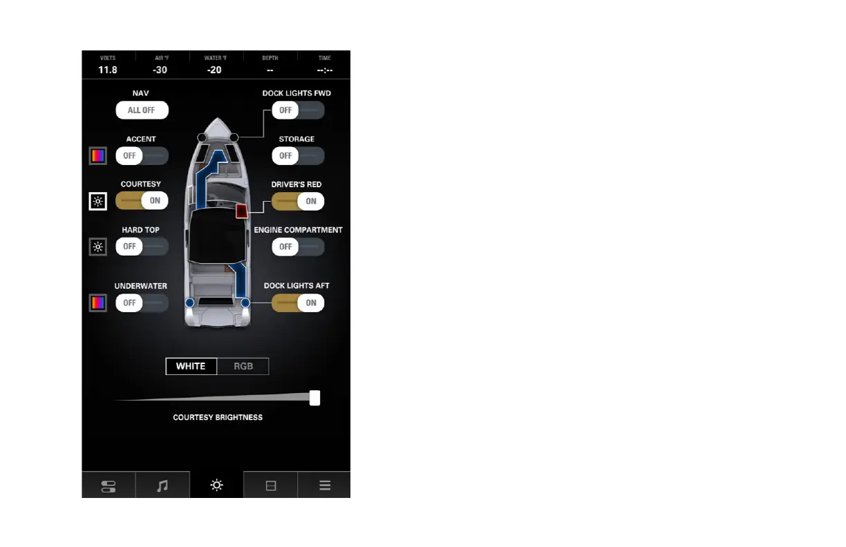 • FWD Highwater Bilge can be turned on by sliding Off to the