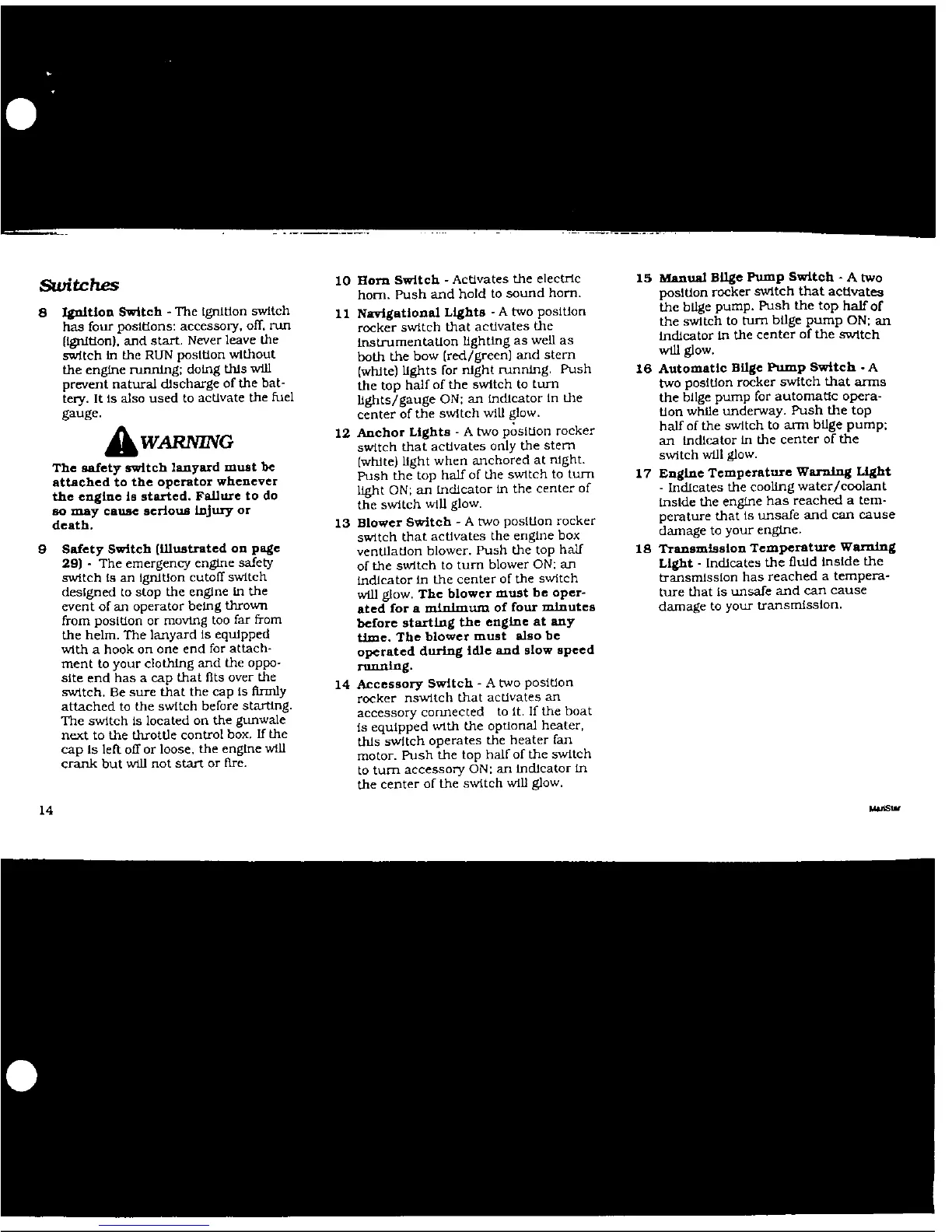 MasterCraft maristar 200 - Switches