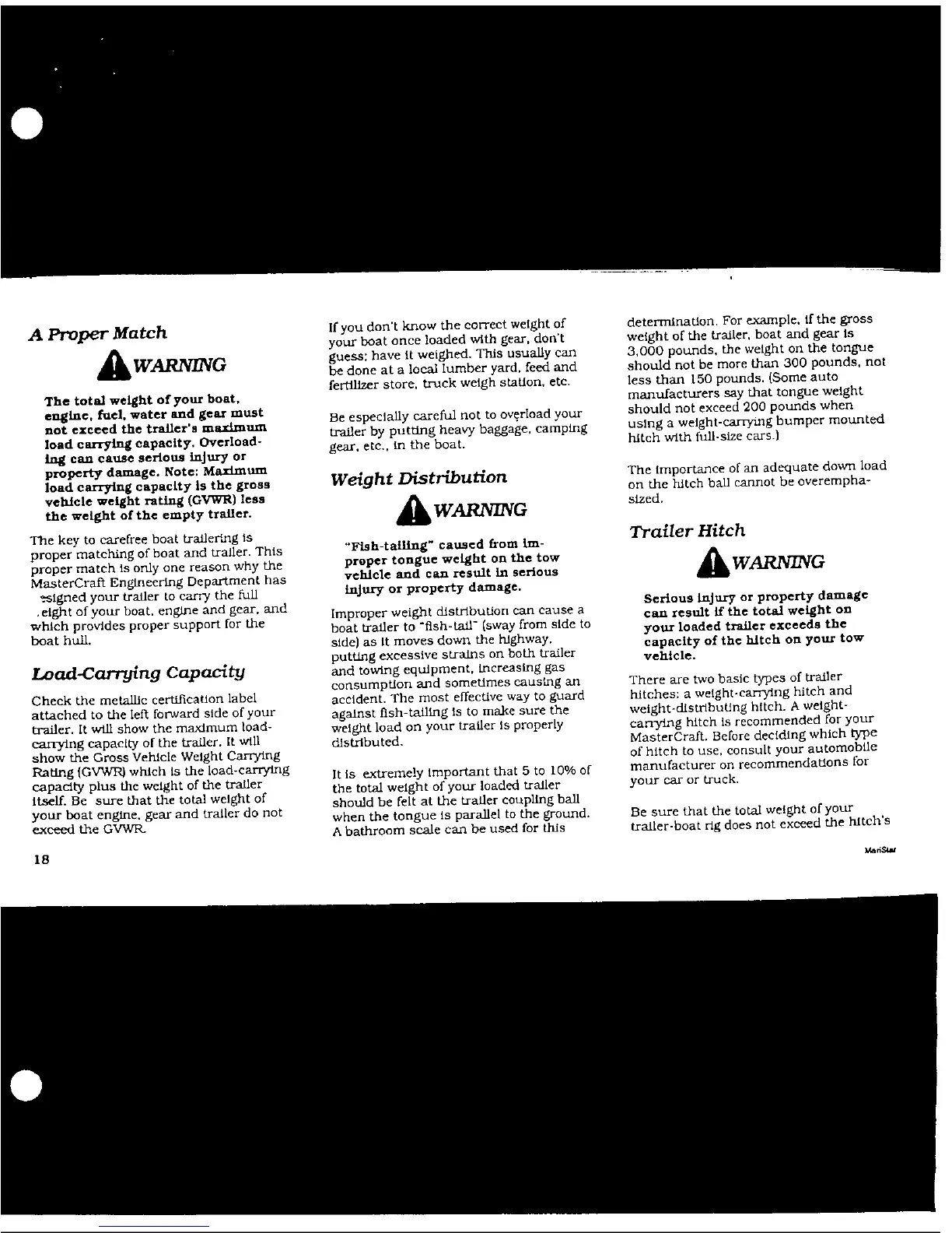 MasterCraft maristar 200 - Trailer Capacity, Weight, and Hitch