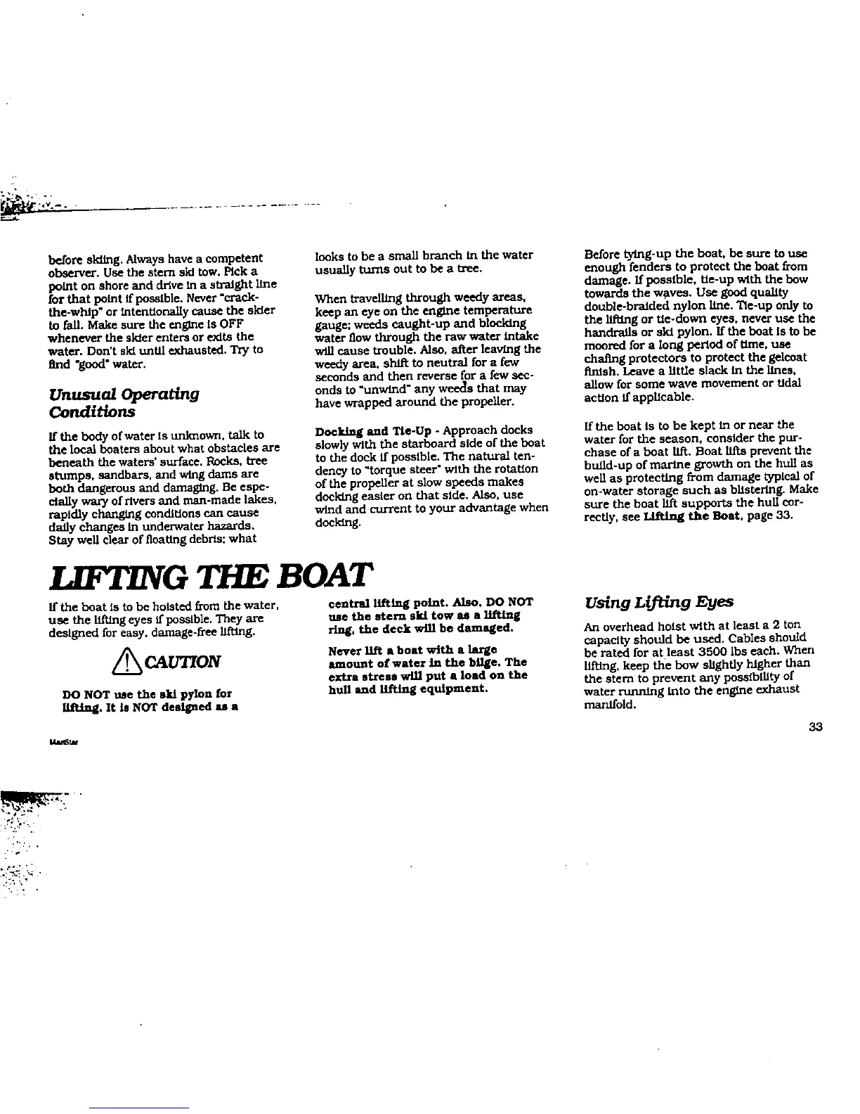 MasterCraft maristar 200 - Lifting the Board; Unusual Operating Conditions; Using Lifting Eyes