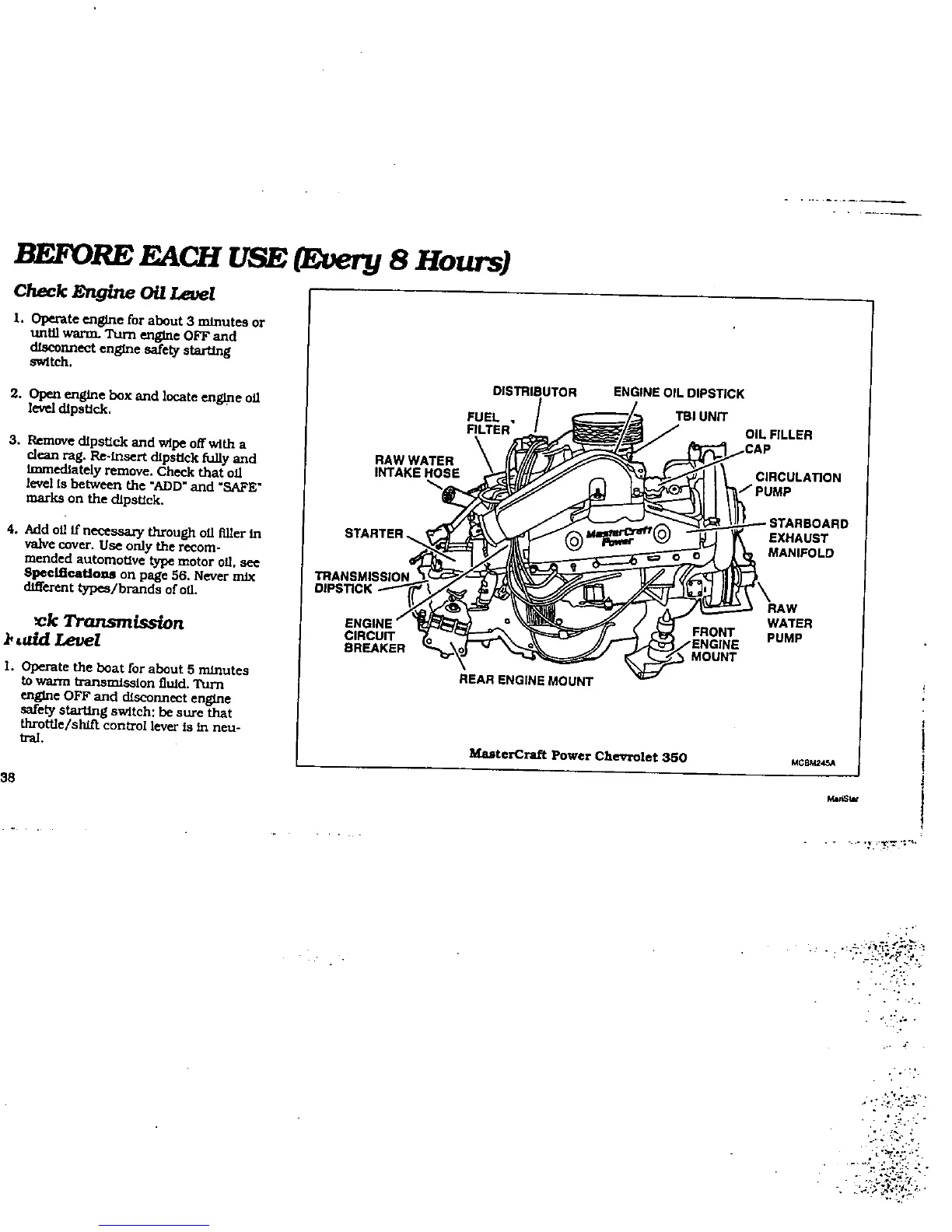 MasterCraft maristar 200 - Check Engine Oil Level; Check Transmission Fluid Level