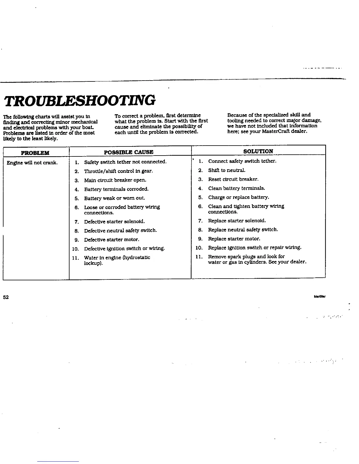 MasterCraft maristar 200 - TROUBLESHOOTING