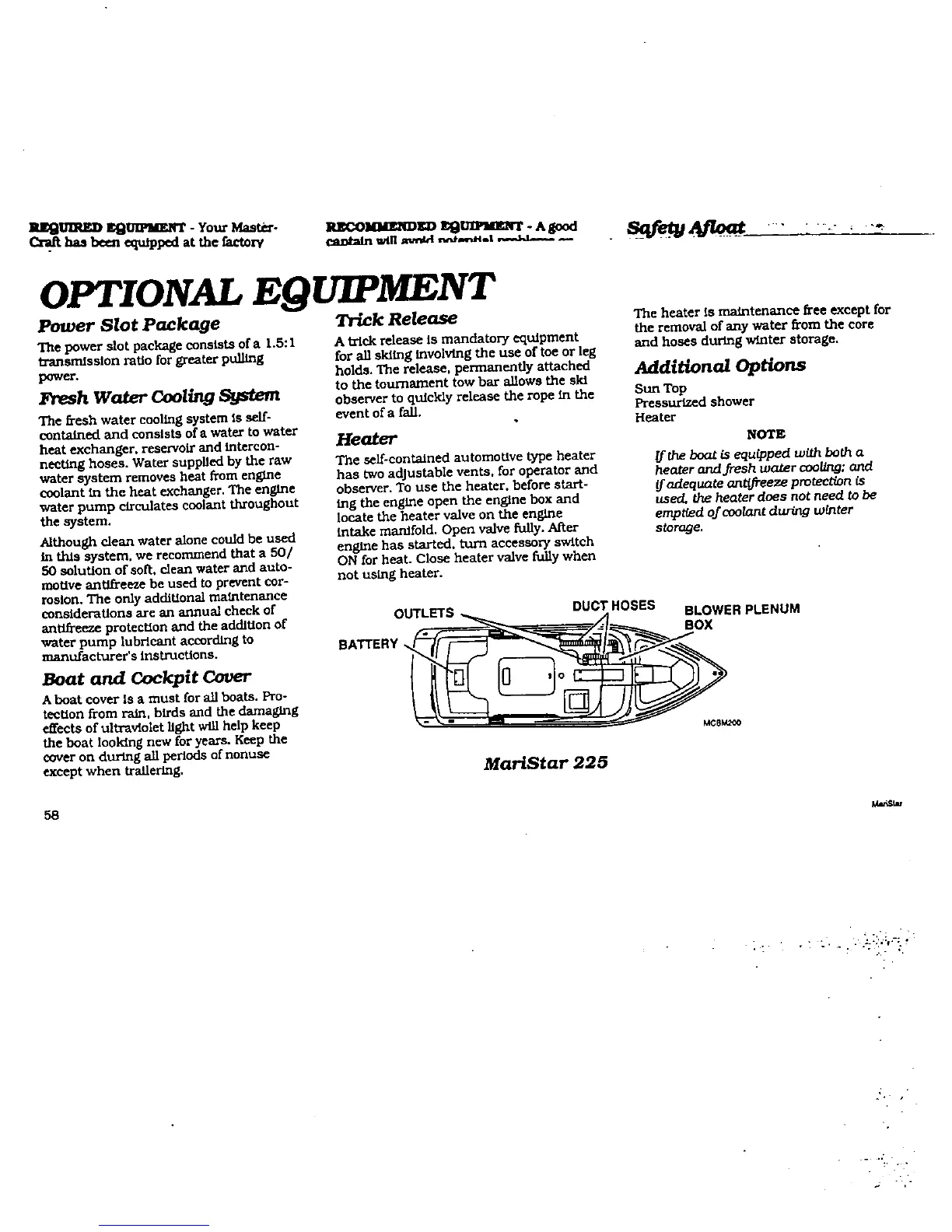 MasterCraft maristar 200 - Optional Equipment; Power Slot Package; Fresh Water Cooling System; Heater