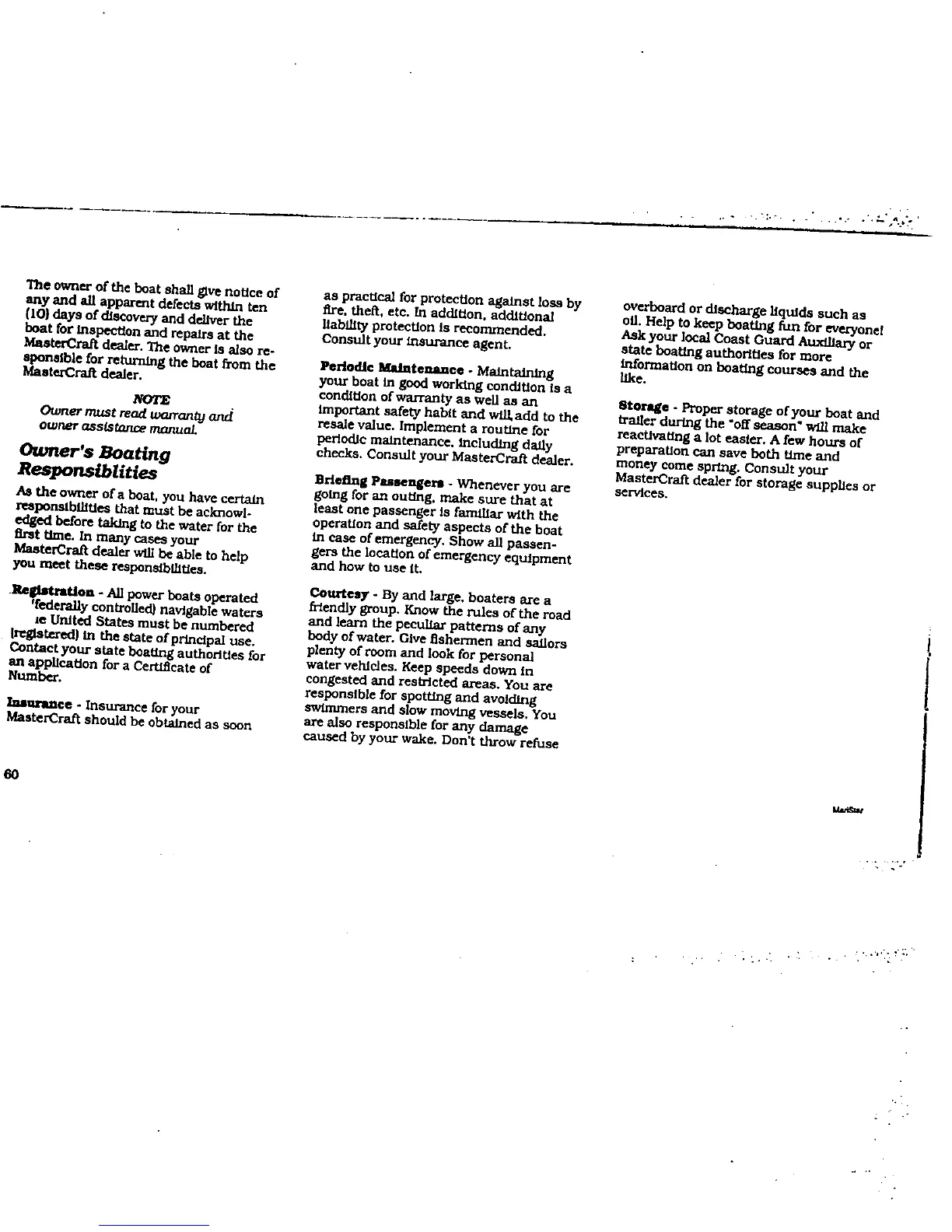 MasterCraft maristar 200 - Owners Warranty Responsibilities; Owners Boating Responsibilities