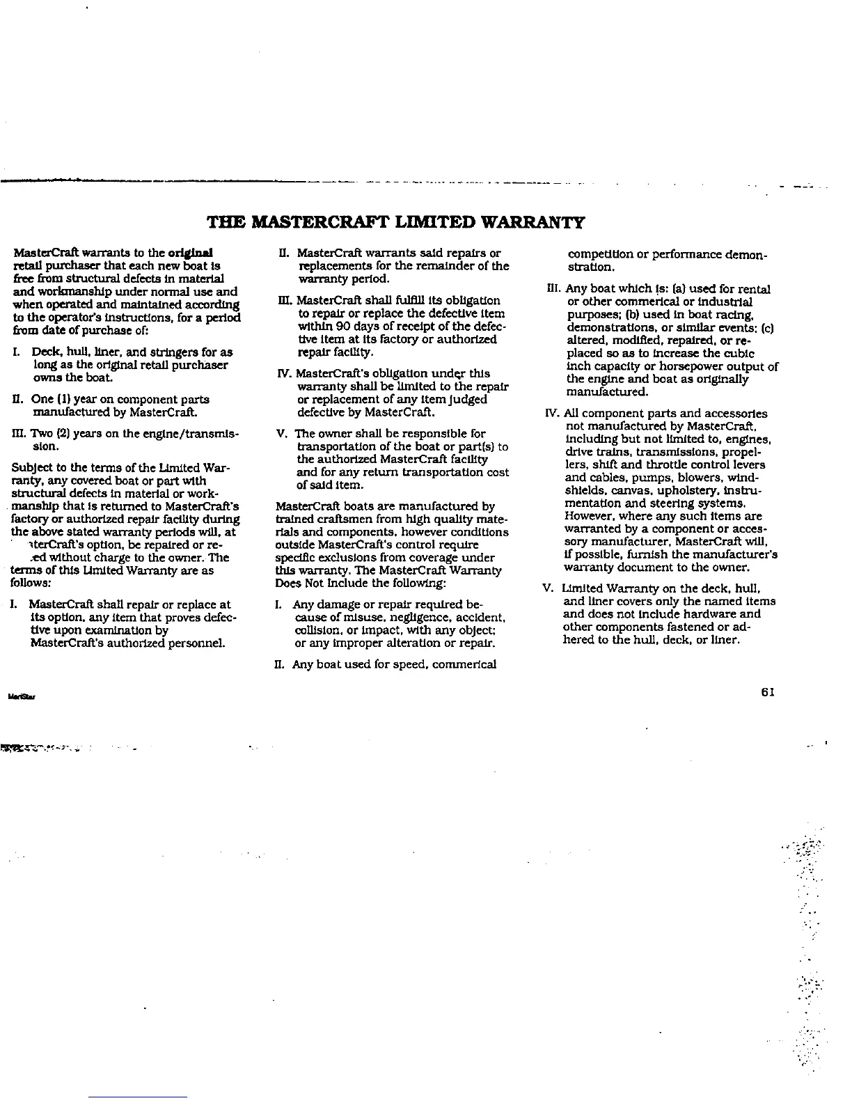 MasterCraft maristar 200 - THE MASTERCRAFT LIMITED WARRANTY