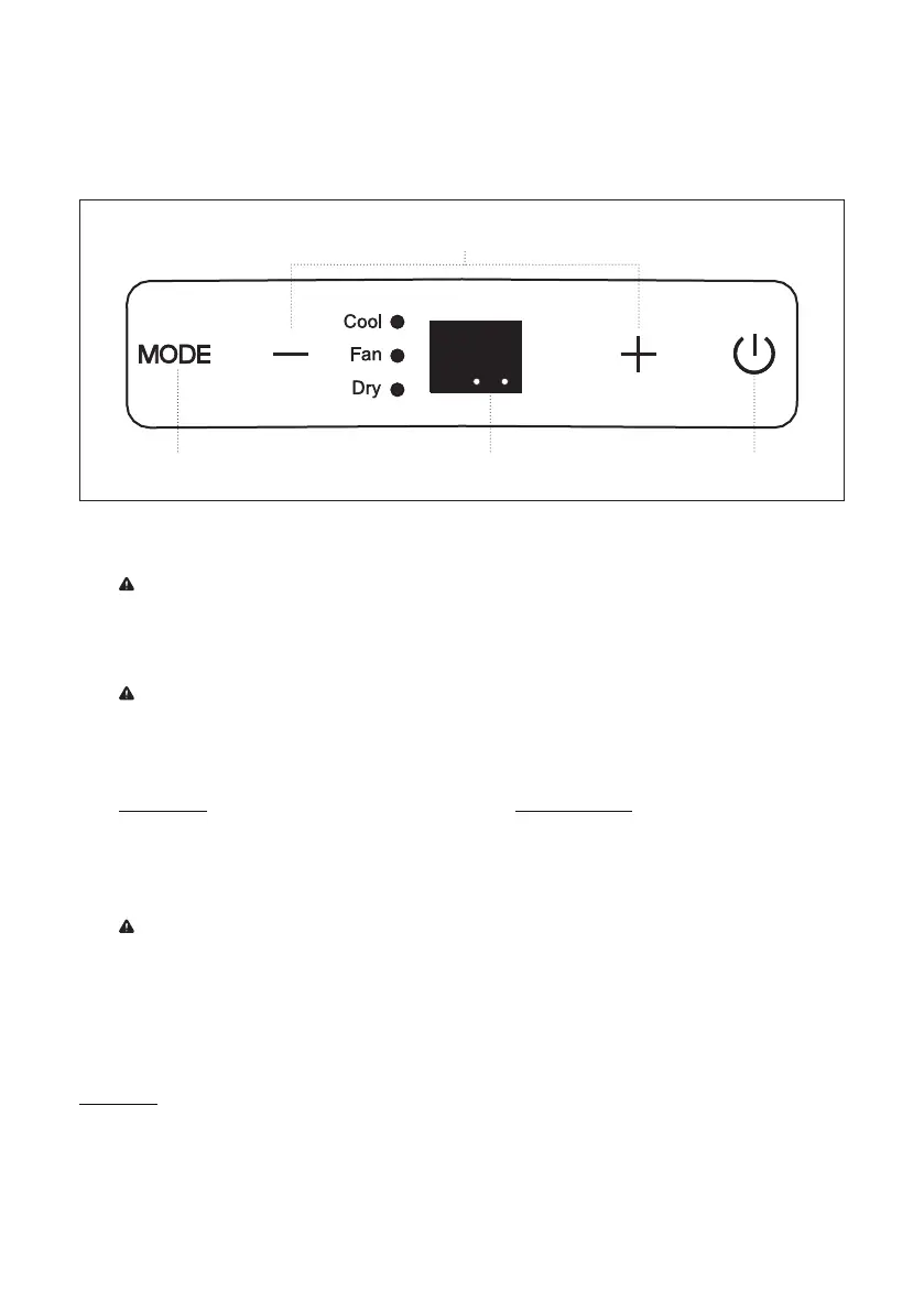 c. LED Display: Shows the set temperature while on COOL mode, and room temperature when in DRY