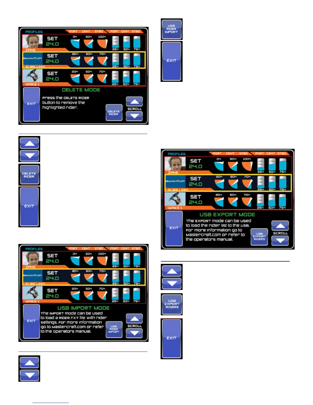 boat to boat by using the USB export and import features. Rider data