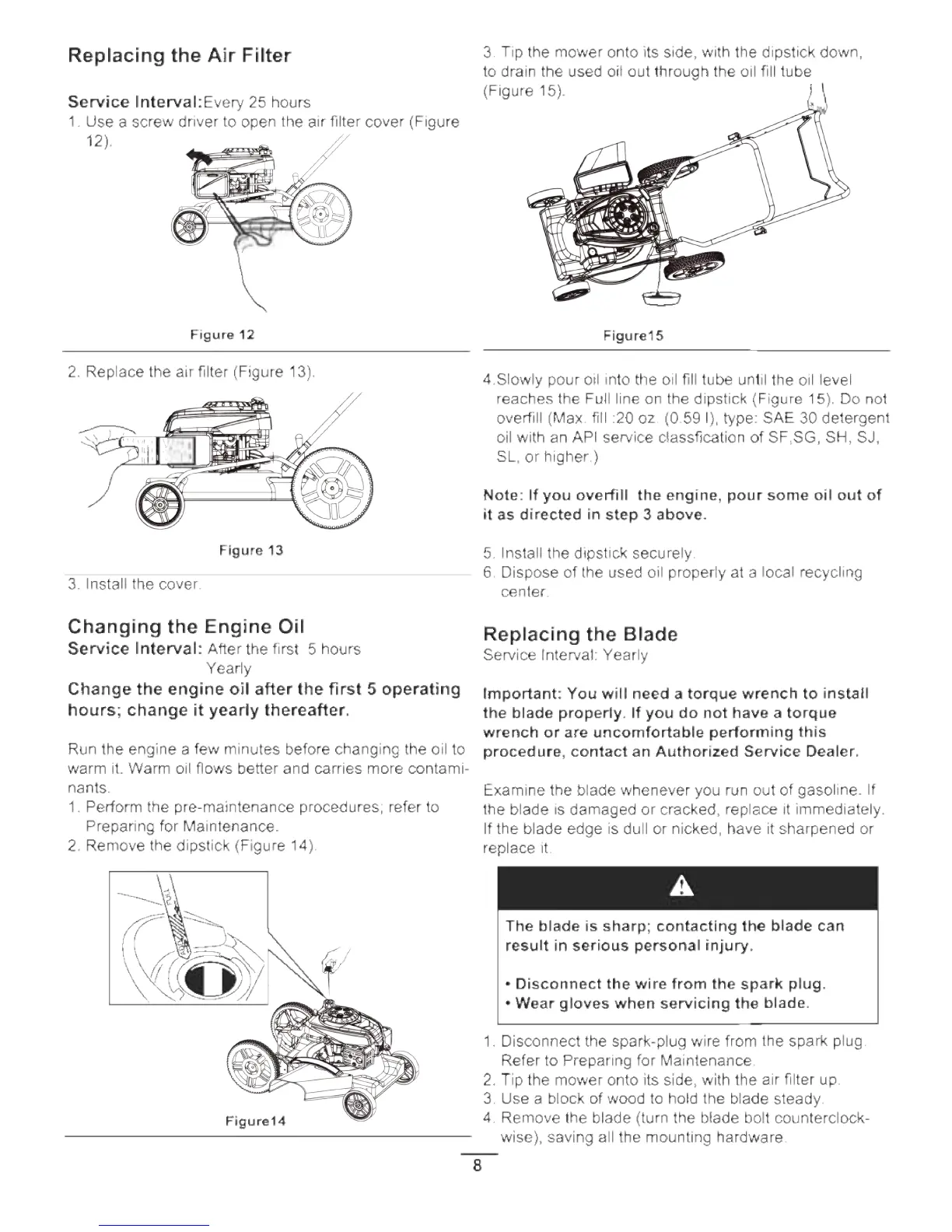 MasterCraft PU850 - Replacing Components; Changing the Engine Oil; Replacing the Blade